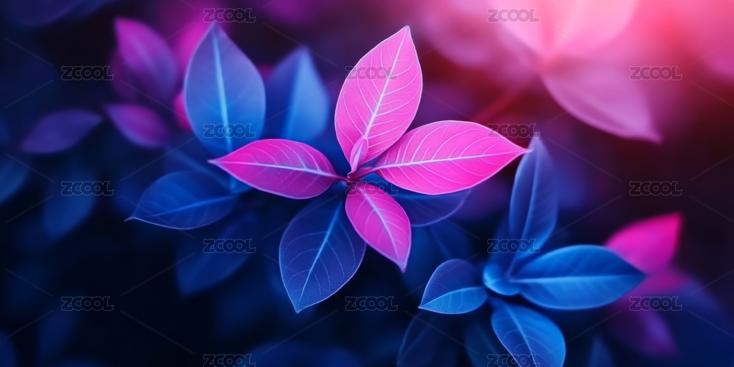 粉蓝渐变彩色叶子