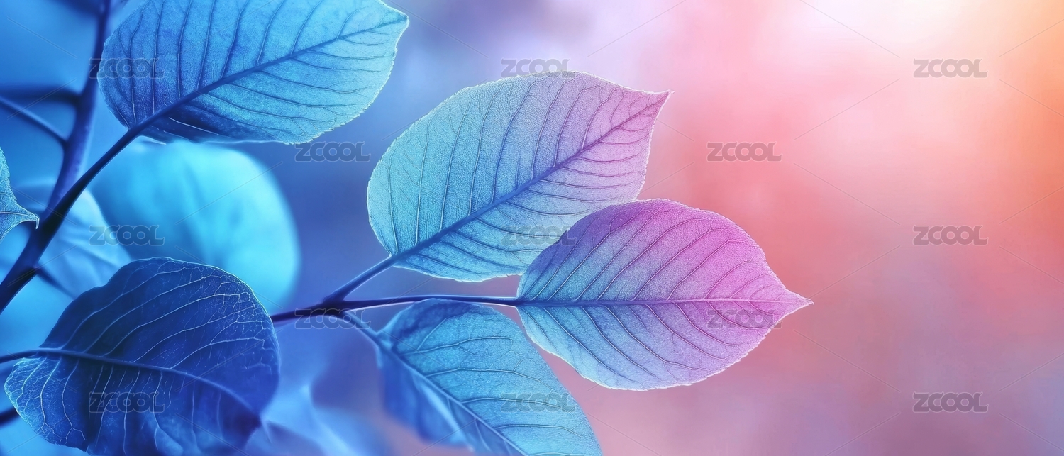 主视觉,彩色,叶片,梦幻风,装饰,背景,场景,色彩,渐变,植物