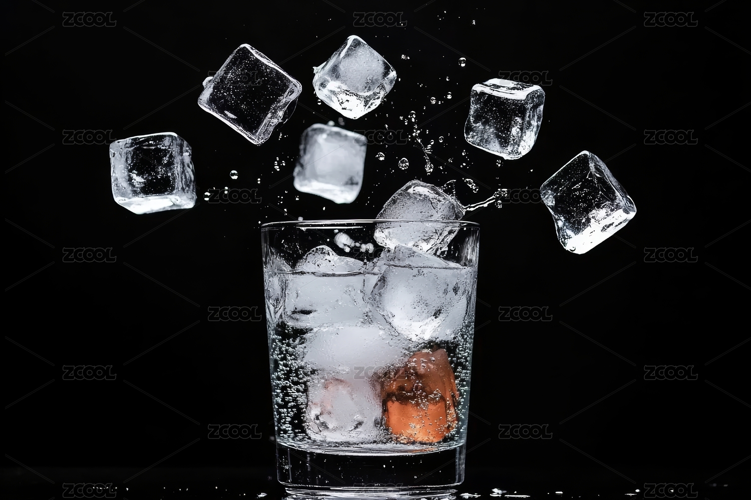 冰块落入玻璃杯场景