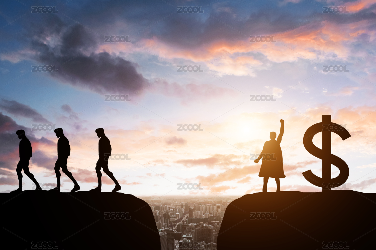 主视觉,远景,金融,场景,美元,符号,山顶,观察,财富,探索