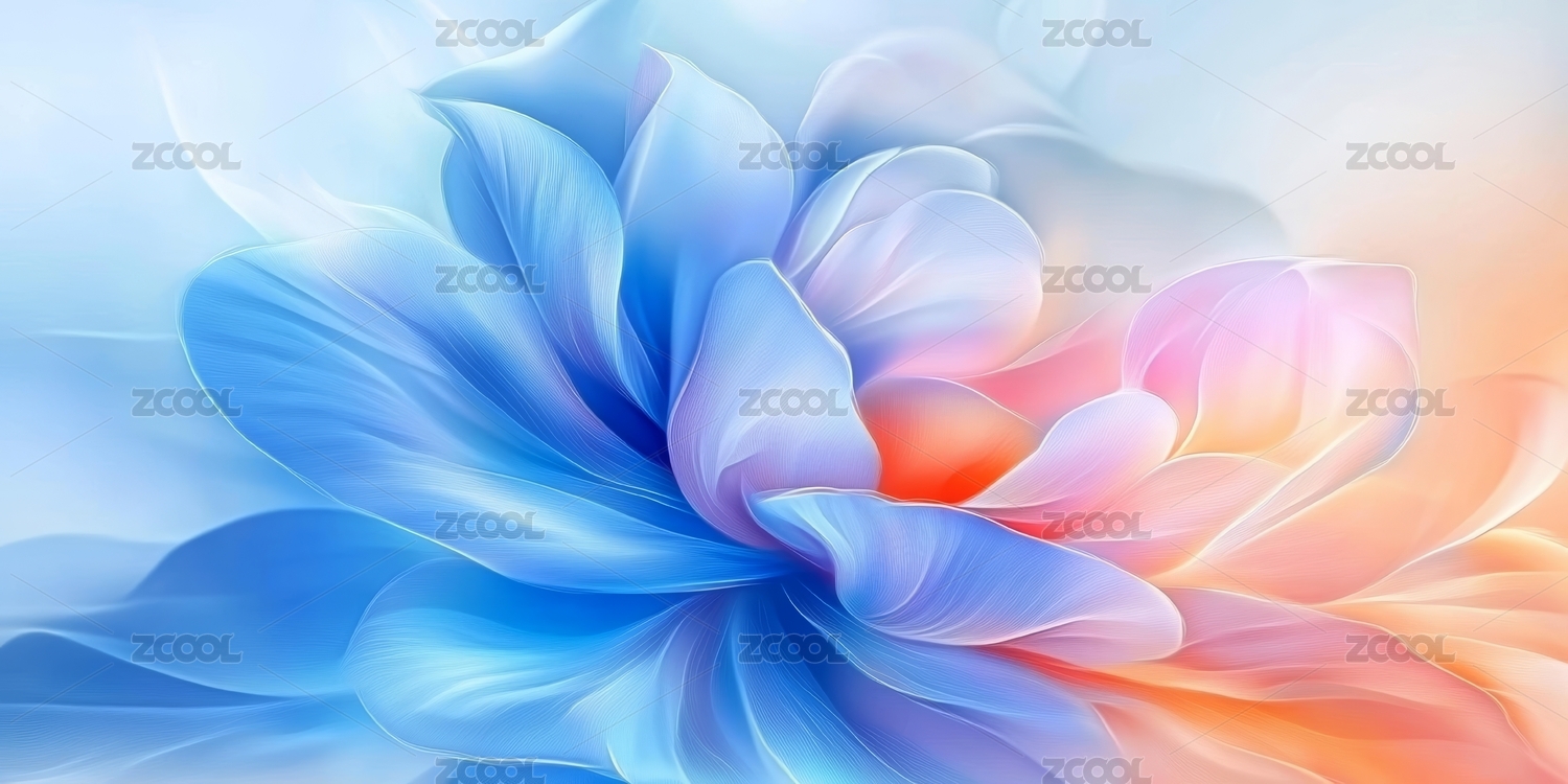 梦幻蓝色花朵与柔和渐变背景