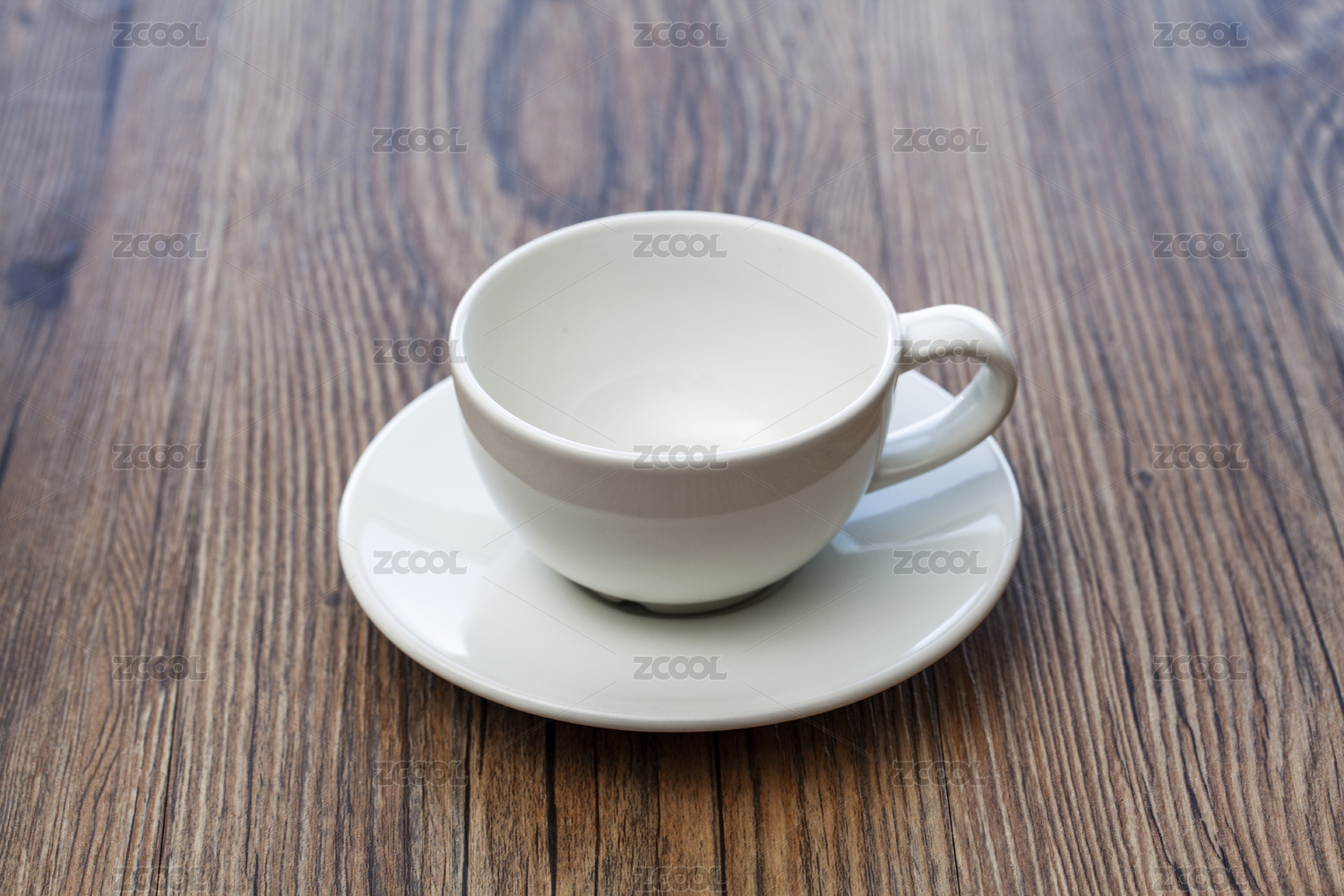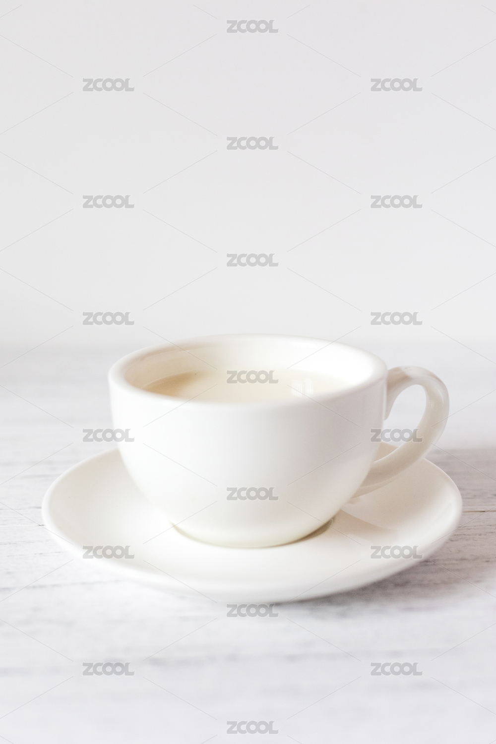 白色木纹桌面上的一个咖啡杯