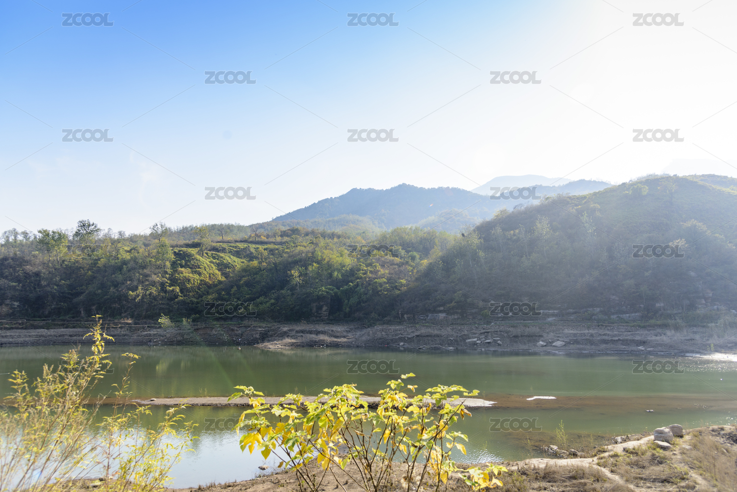 晴朗蓝天下的广东韶关始兴山口大坝水库