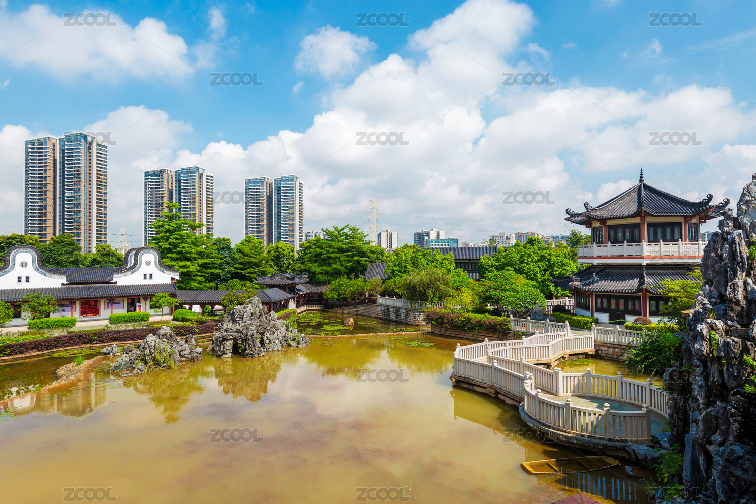 中国安徽宿州灵璧奇石文化园池塘建筑