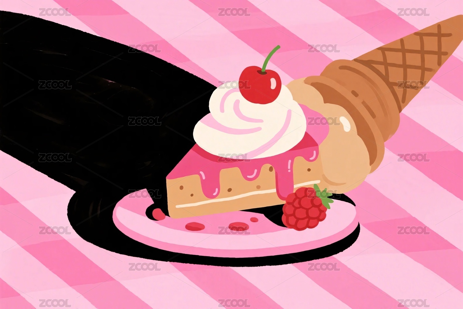 夏至立夏节气夏天吃冰淇淋雪糕冰棒美食插画