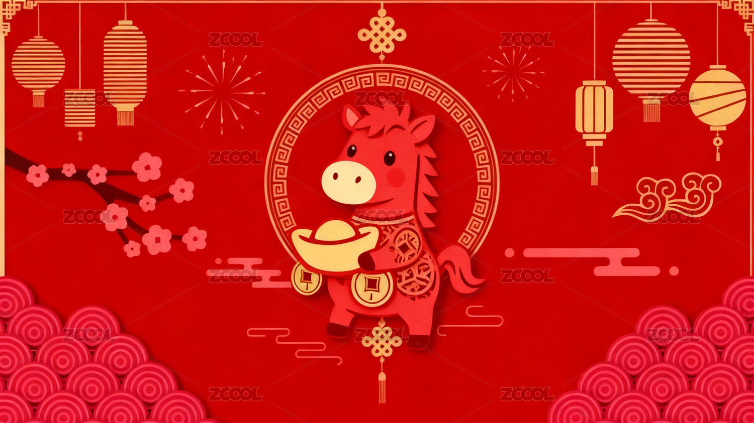 2026中国风生肖动物马的春节节日设计
