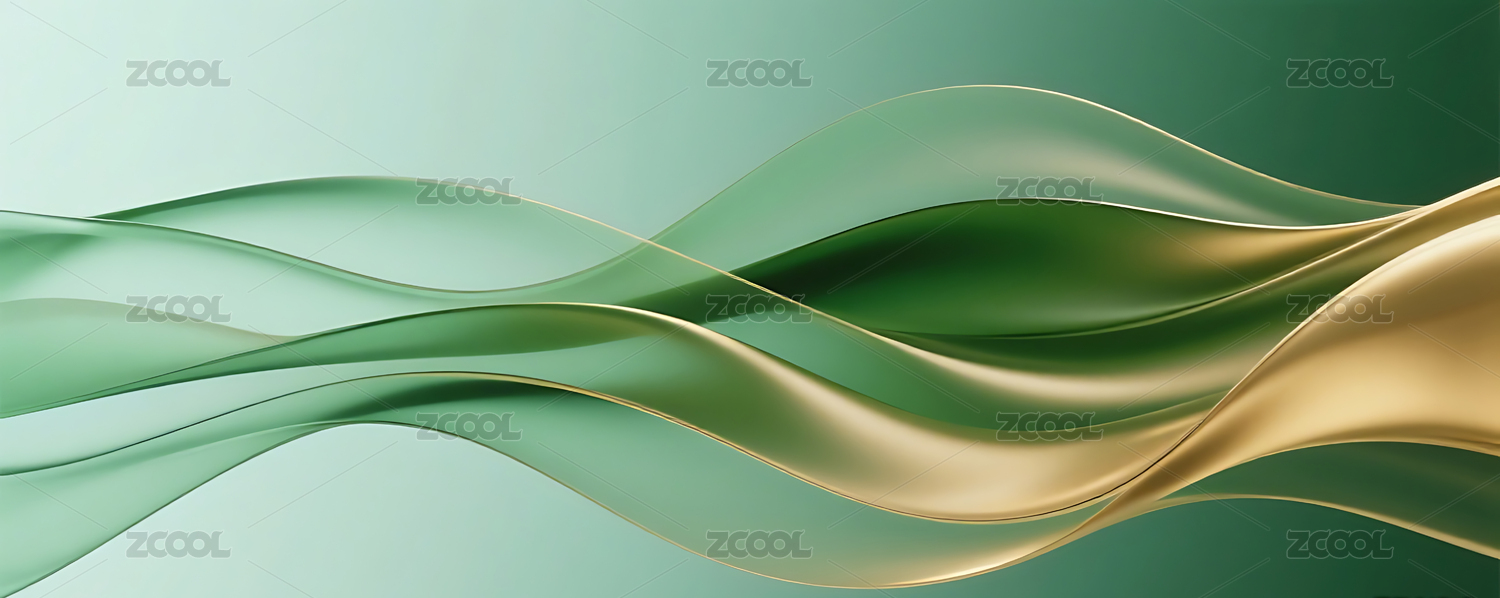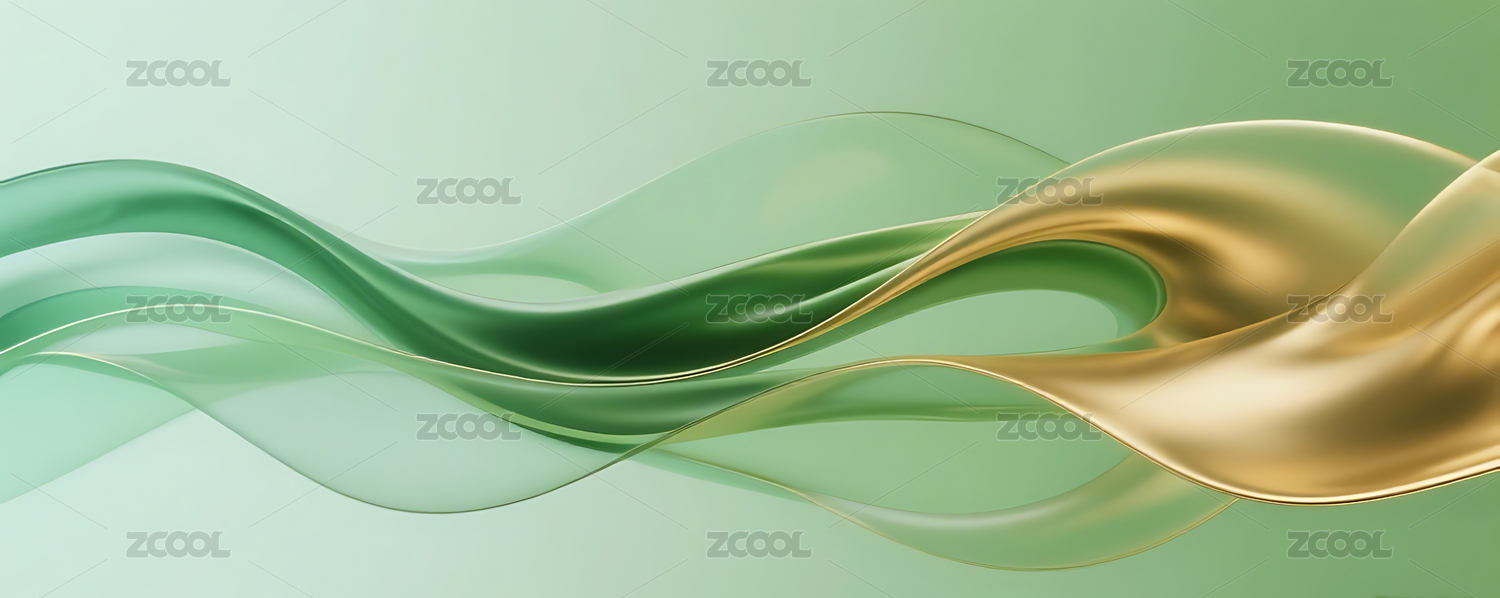 绿金色抽象流动柔和的丝绸曲线背景
