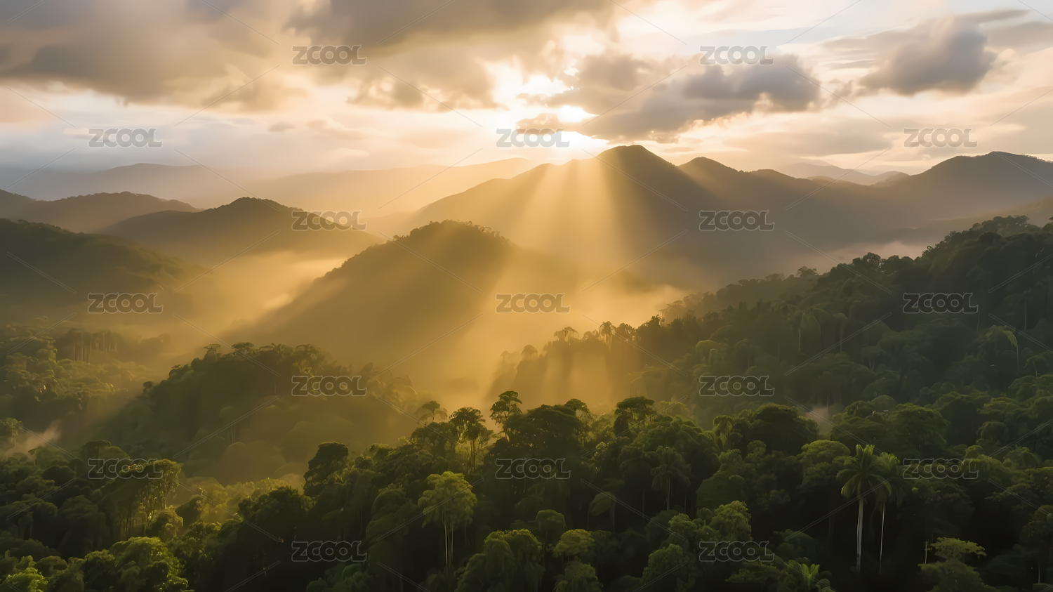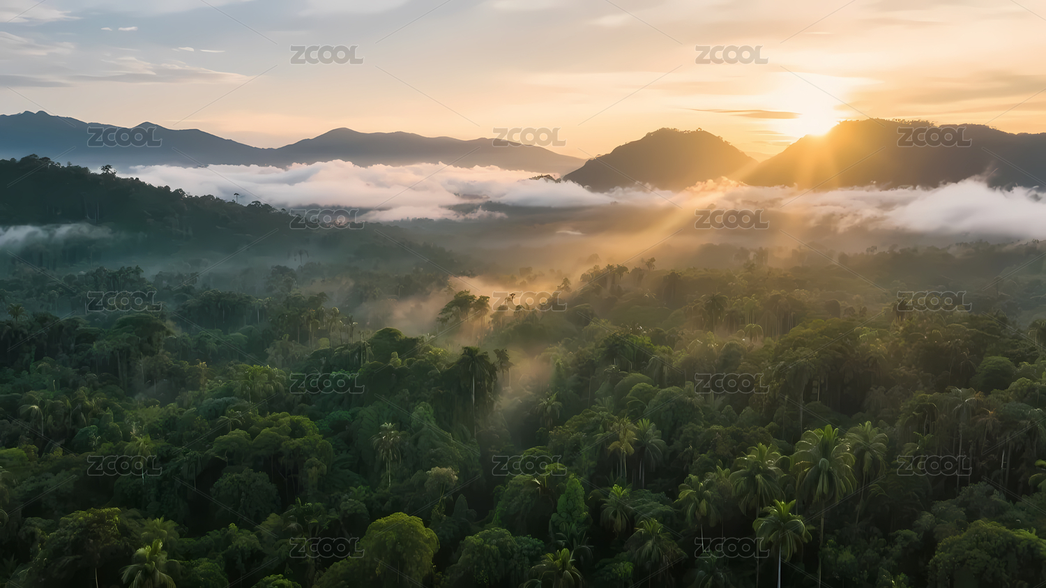 热带雨林夕阳山脉