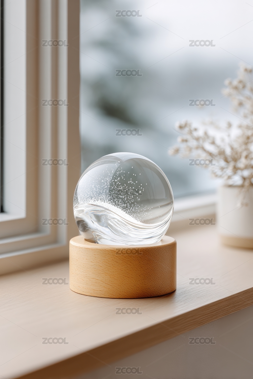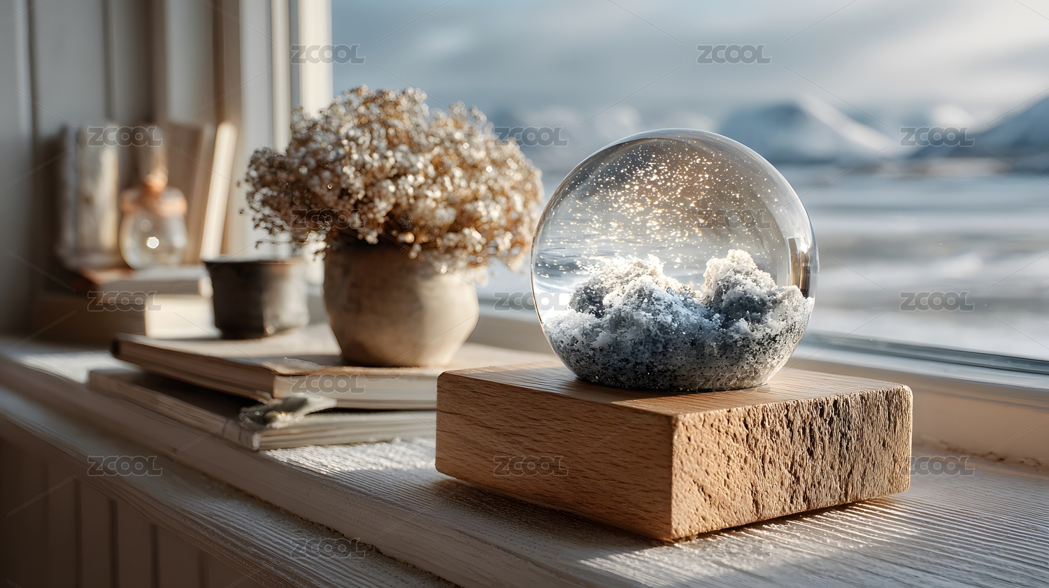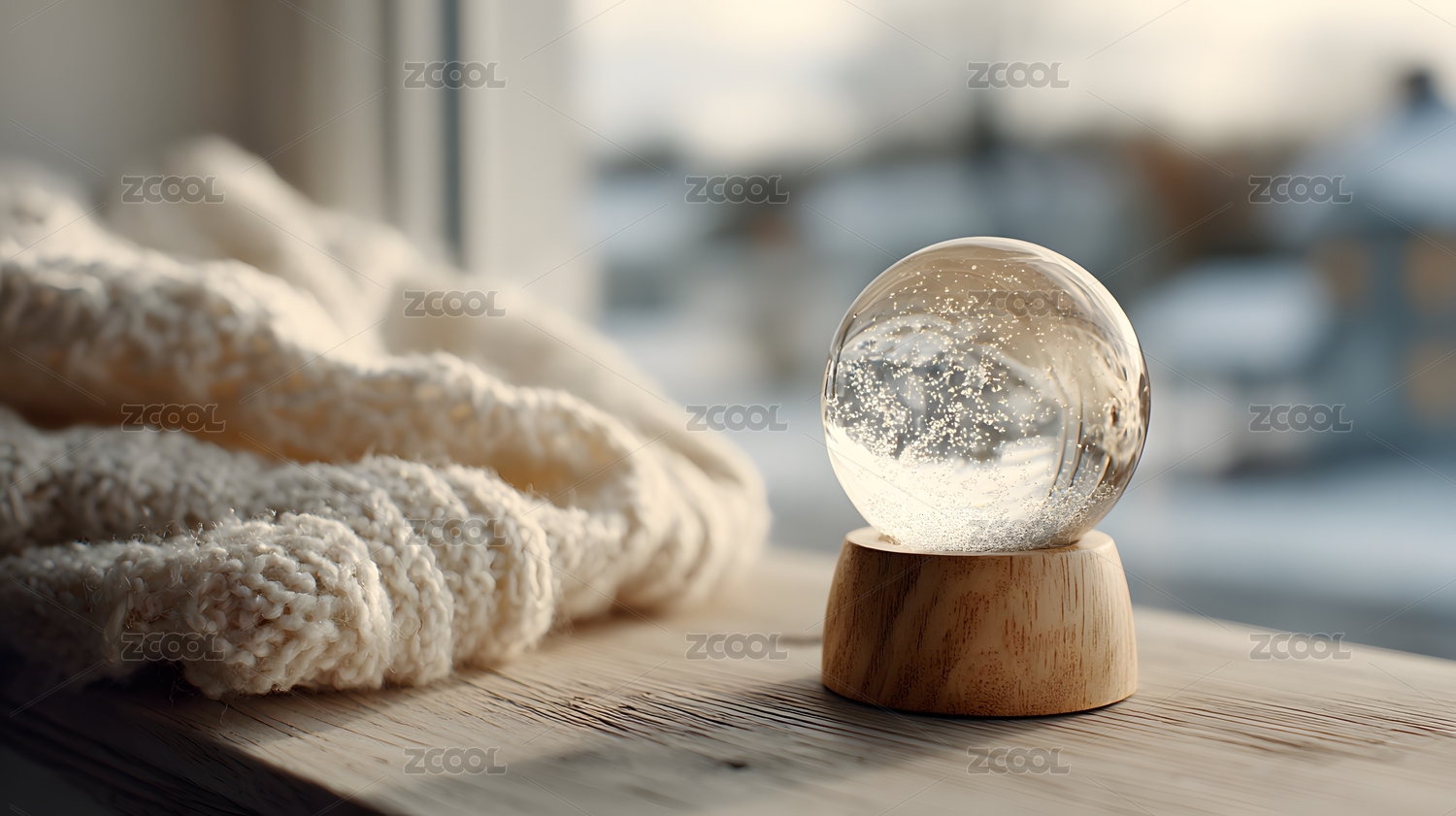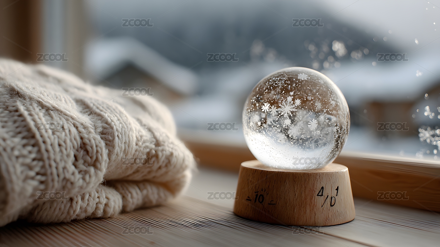 窗台雪景水晶球 温暖毛毯 冬日静谧
