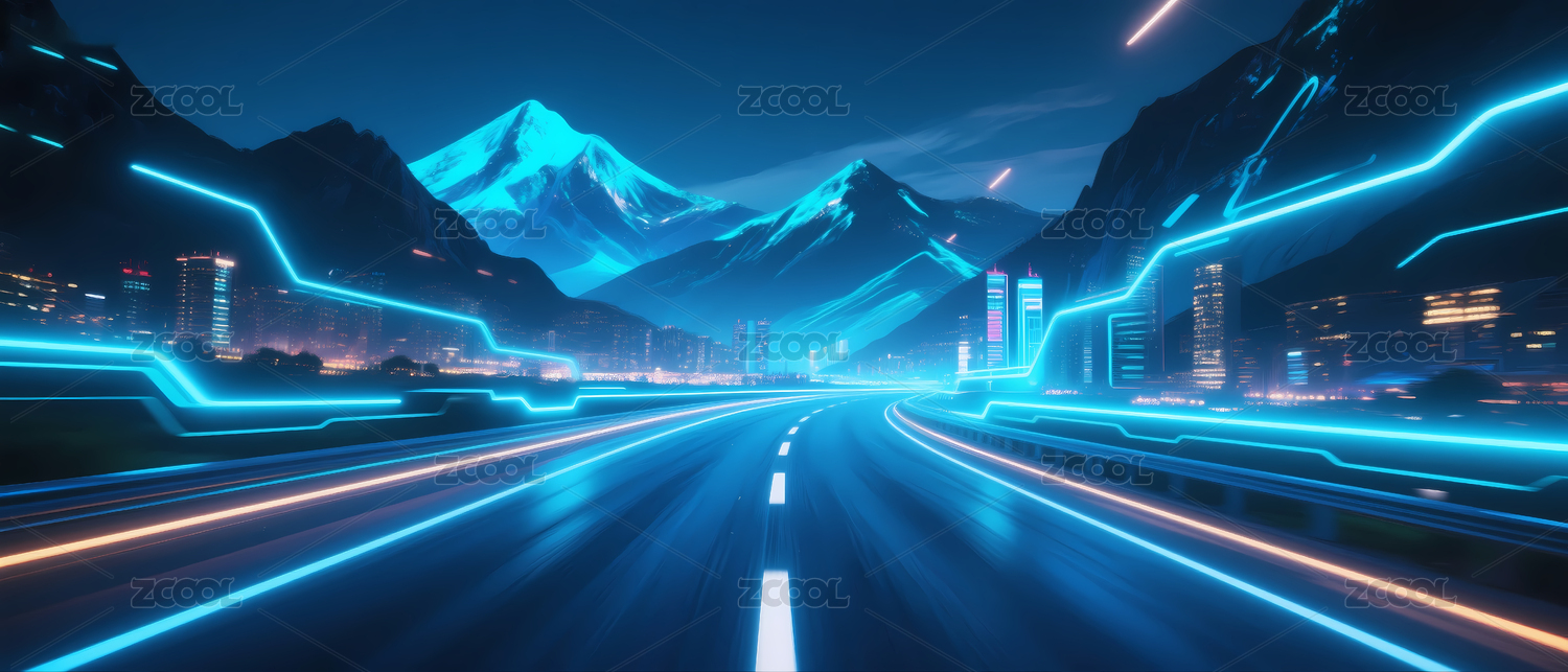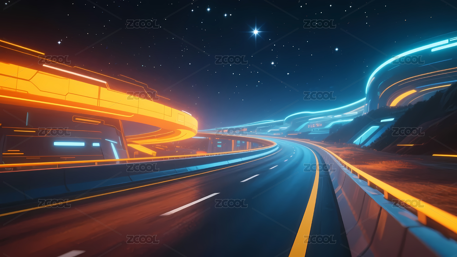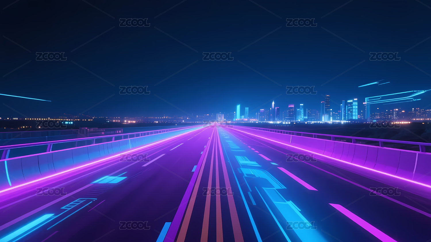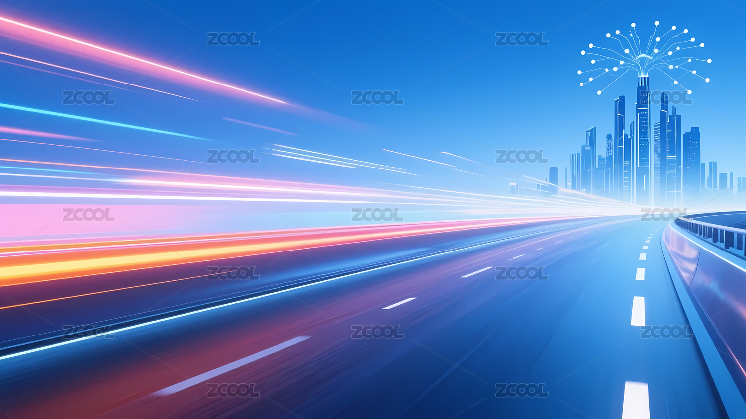 蓝色,蜿蜒,高速,公路,光带,车灯轨迹,粉色,橙色,桥梁,现代