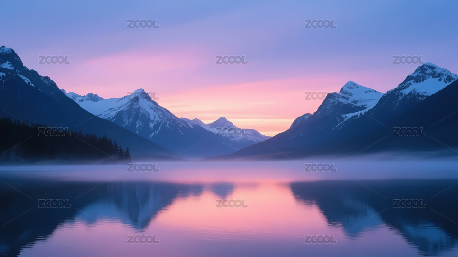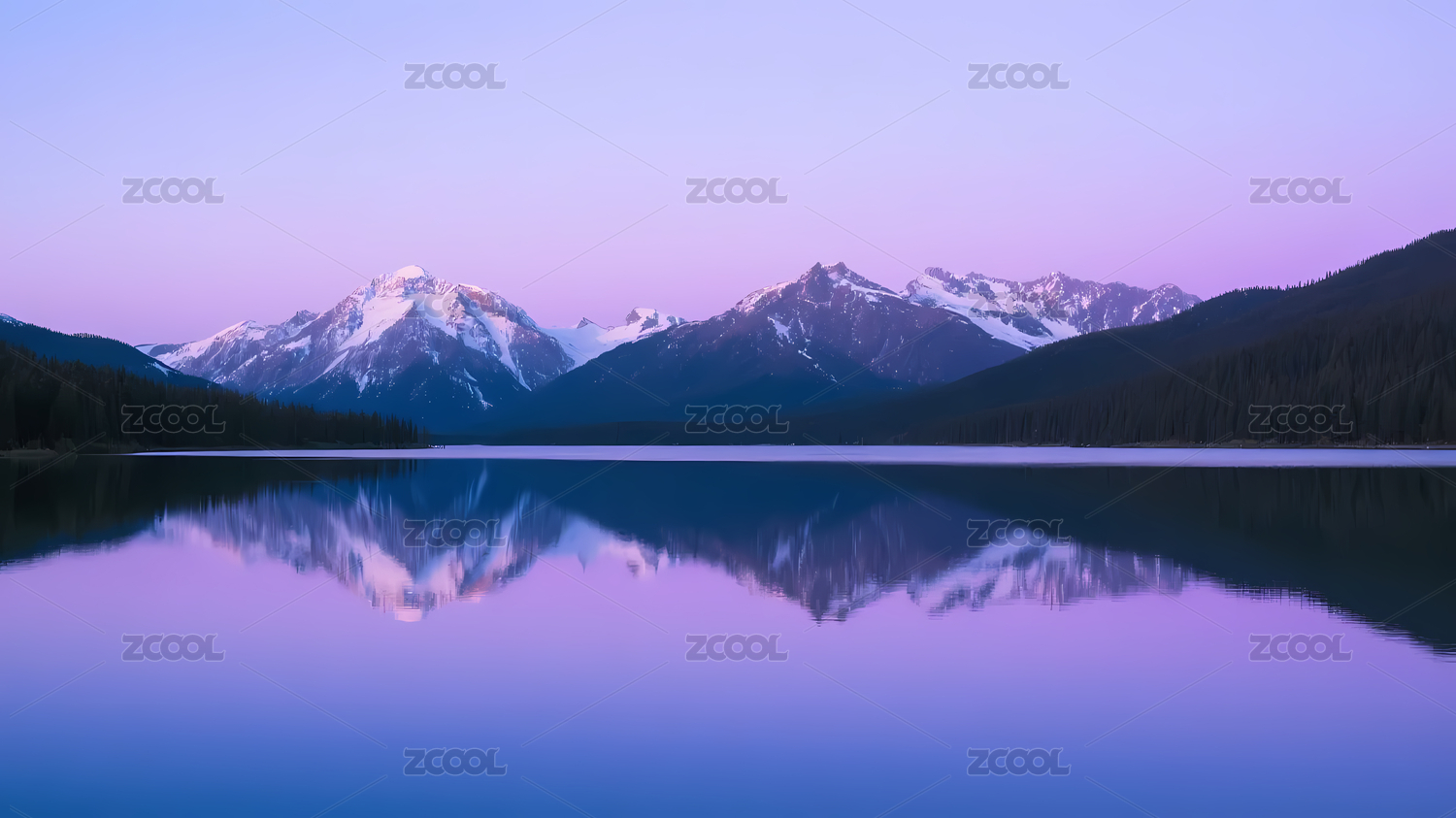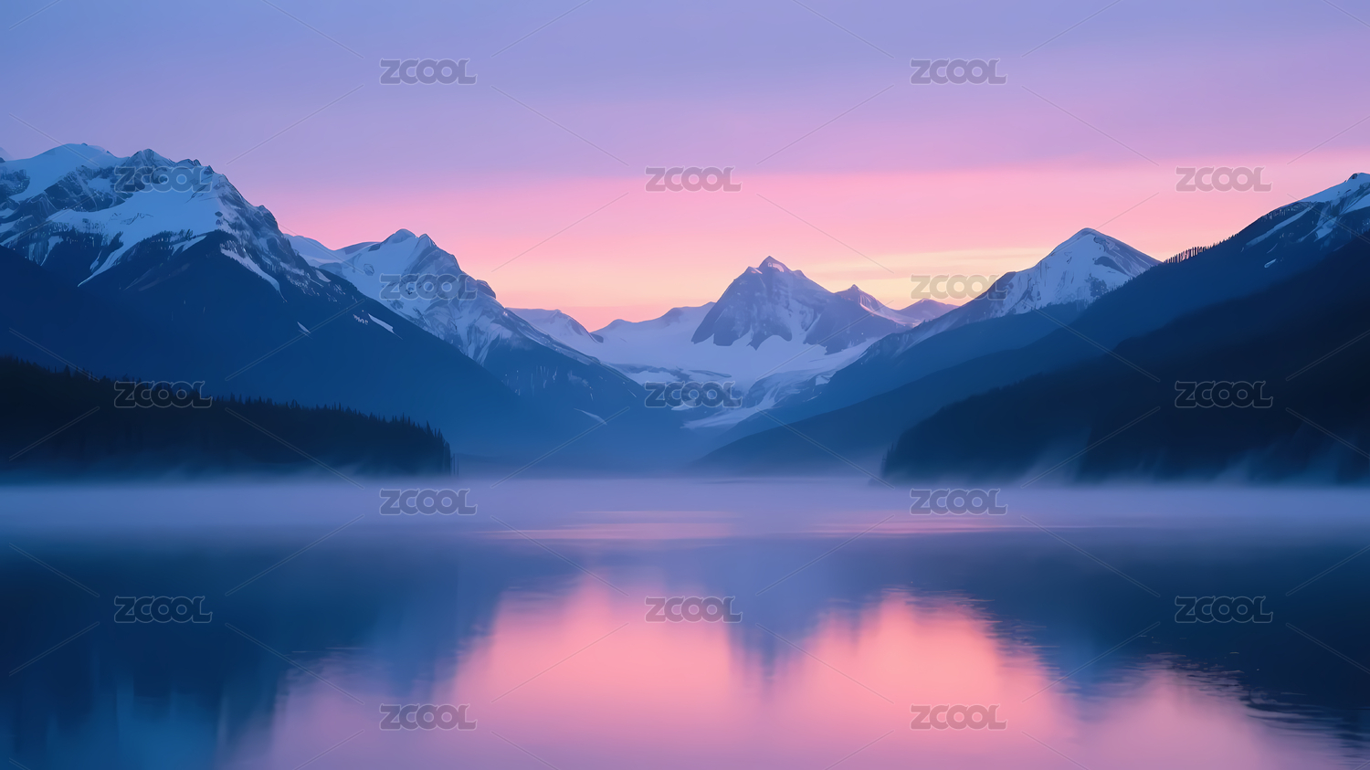 动感,紫色,渐变,雪峰,湖泊,山脉,粉色,倒影,红光,景象