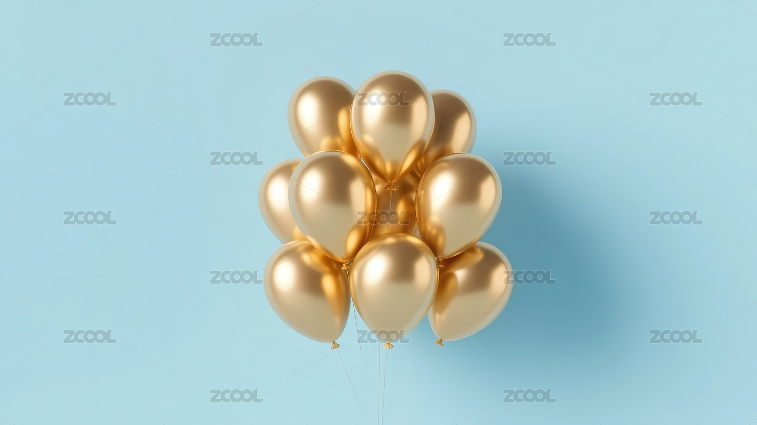 金色气球浅蓝背景