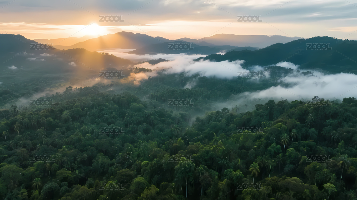 热带雨林夕阳山脉