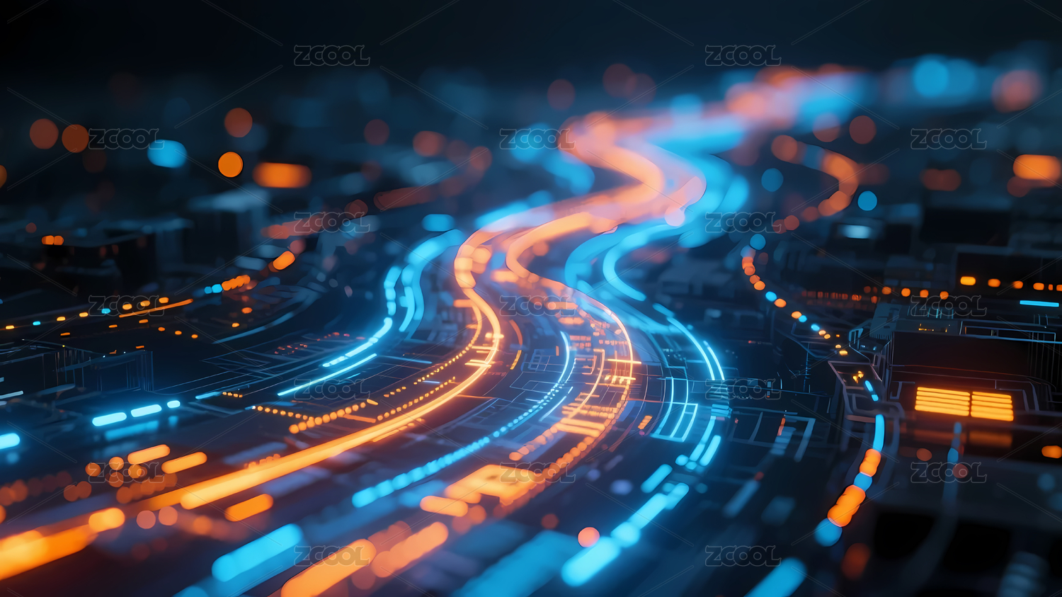 蓝色,科技,电路板,未来,视觉,橙色,高科技,模糊,线路,元件