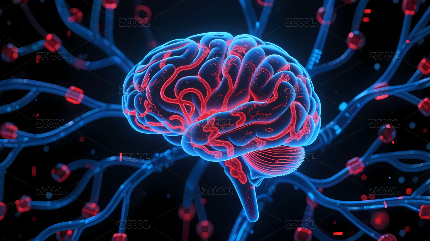蓝色,未来,科技,黄色,紫色,大脑,神经网络,粉色,线条,点状