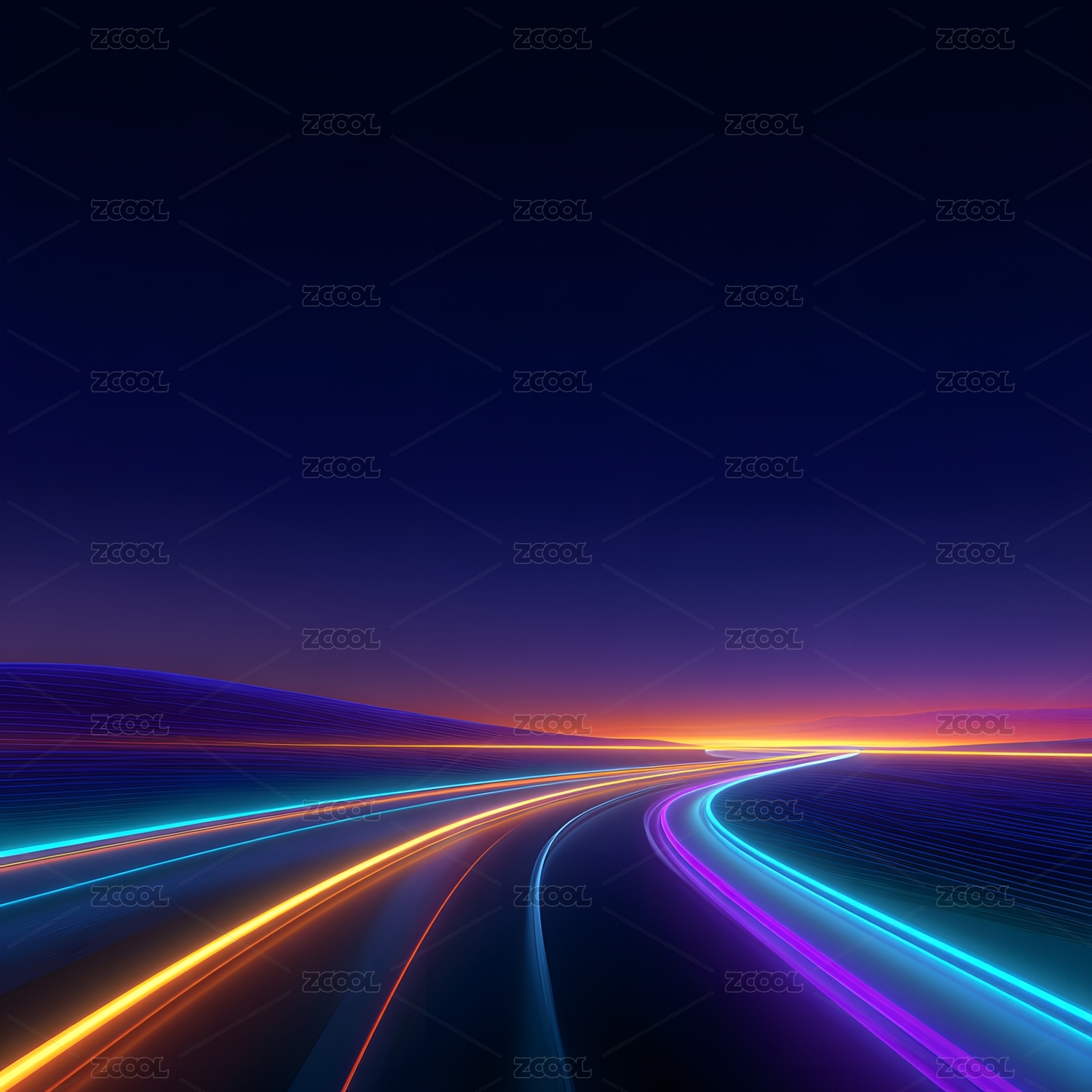 夜幕下霓虹光轨飞驰,赛博朋克公路幻境