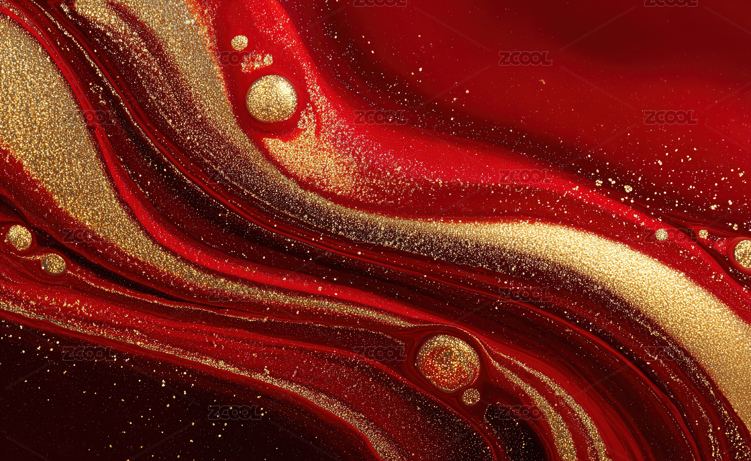 抽象红色和金色流体艺术图案