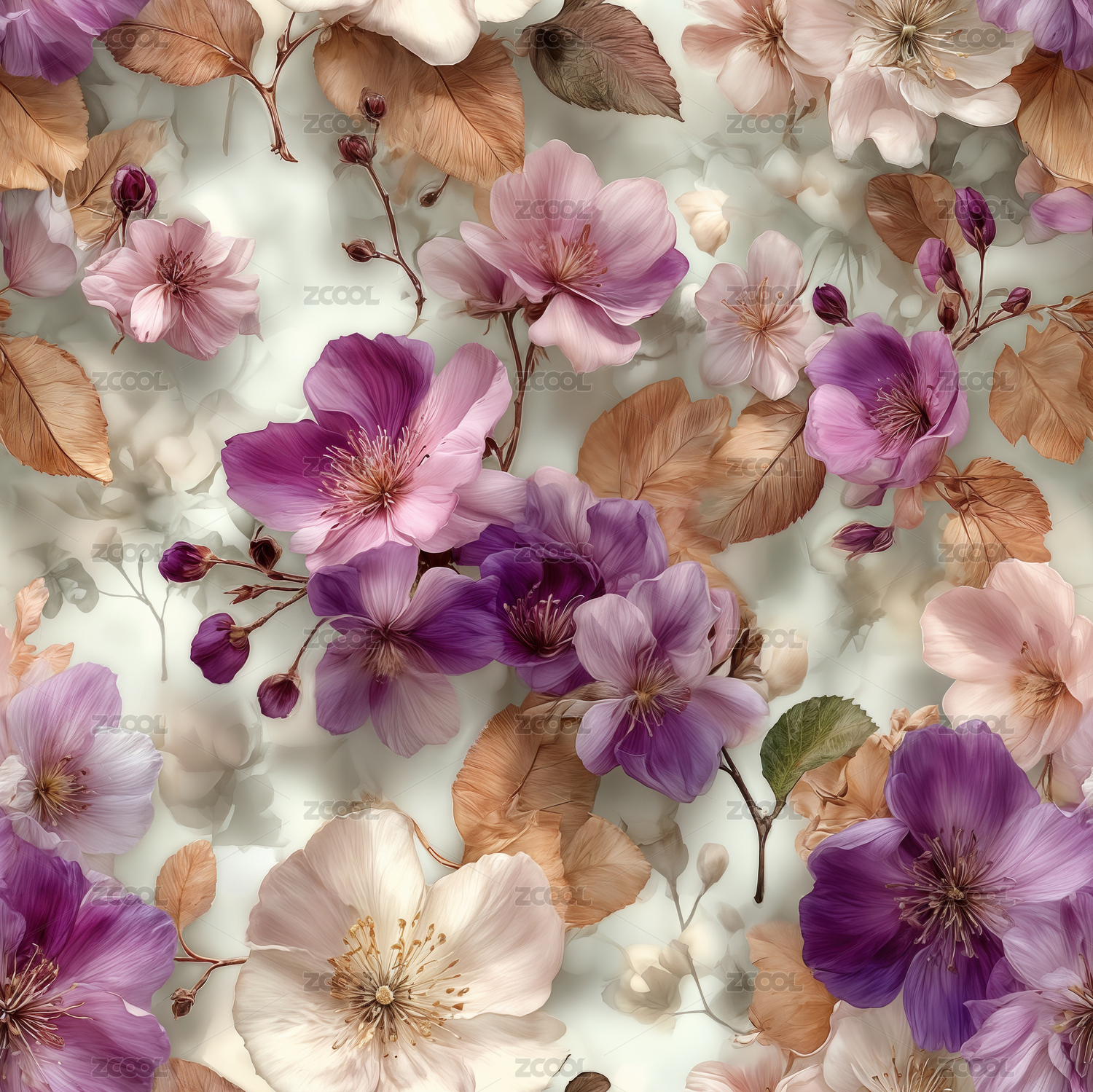 四方连续图,组合型花卉,抽象,AI,数码印花