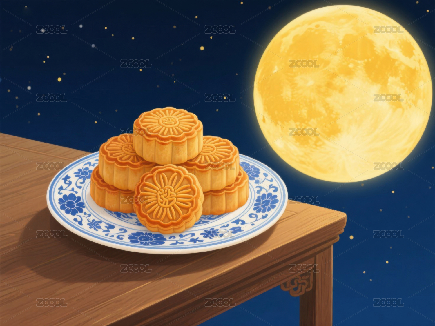 中秋,月饼,满月,中秋节,夜晚,节日,传统,温馨,静谧,文化