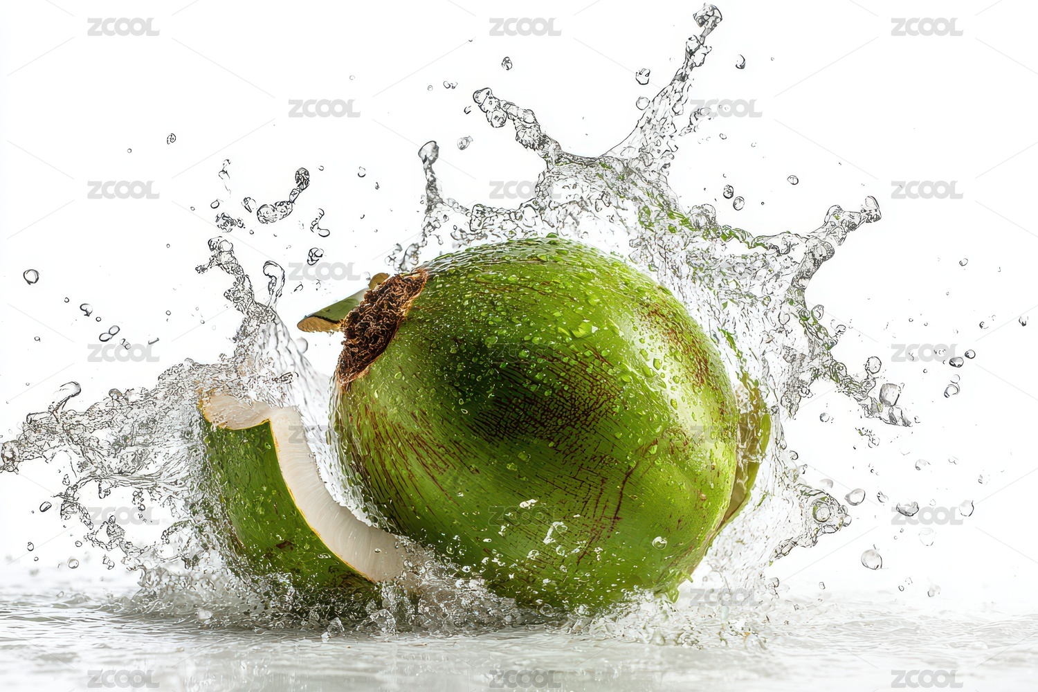 绿椰子与水花碰撞的瞬间