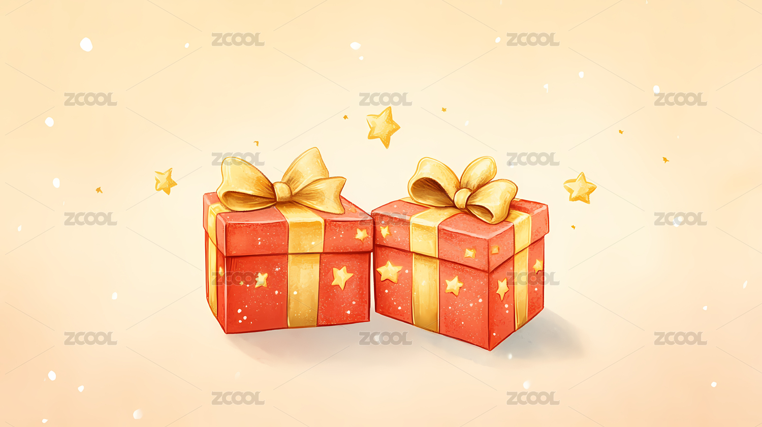 渐变暖色红礼盒星星