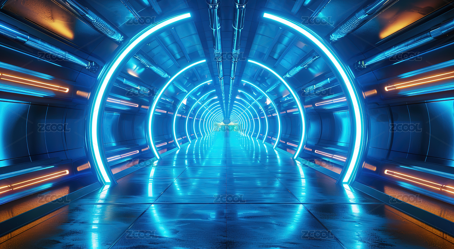 隧道,科幻,未来感,灯光,场景,插画,矢量,科技感,光影,蓝色