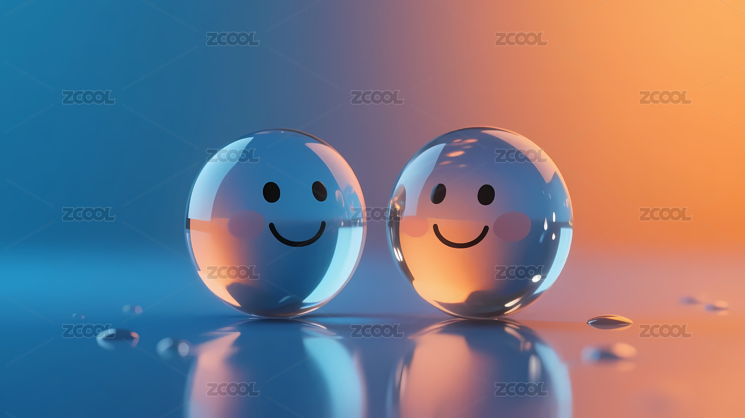 蓝色,橙色,装饰,渐变,光泽,柔和,球体,透明,笑脸,水珠