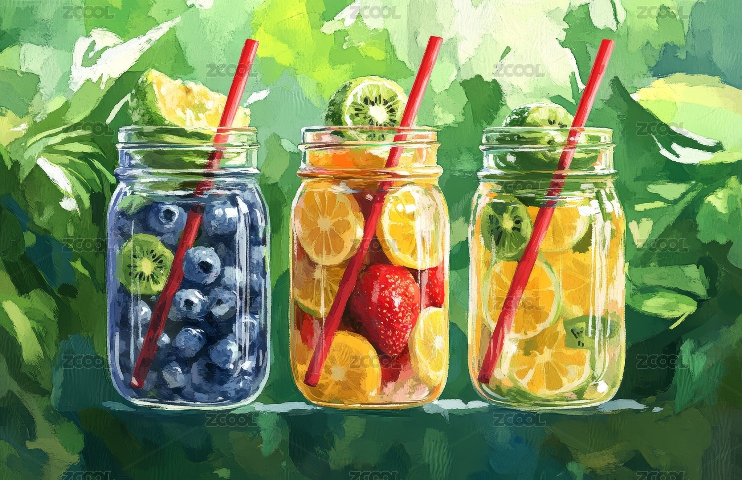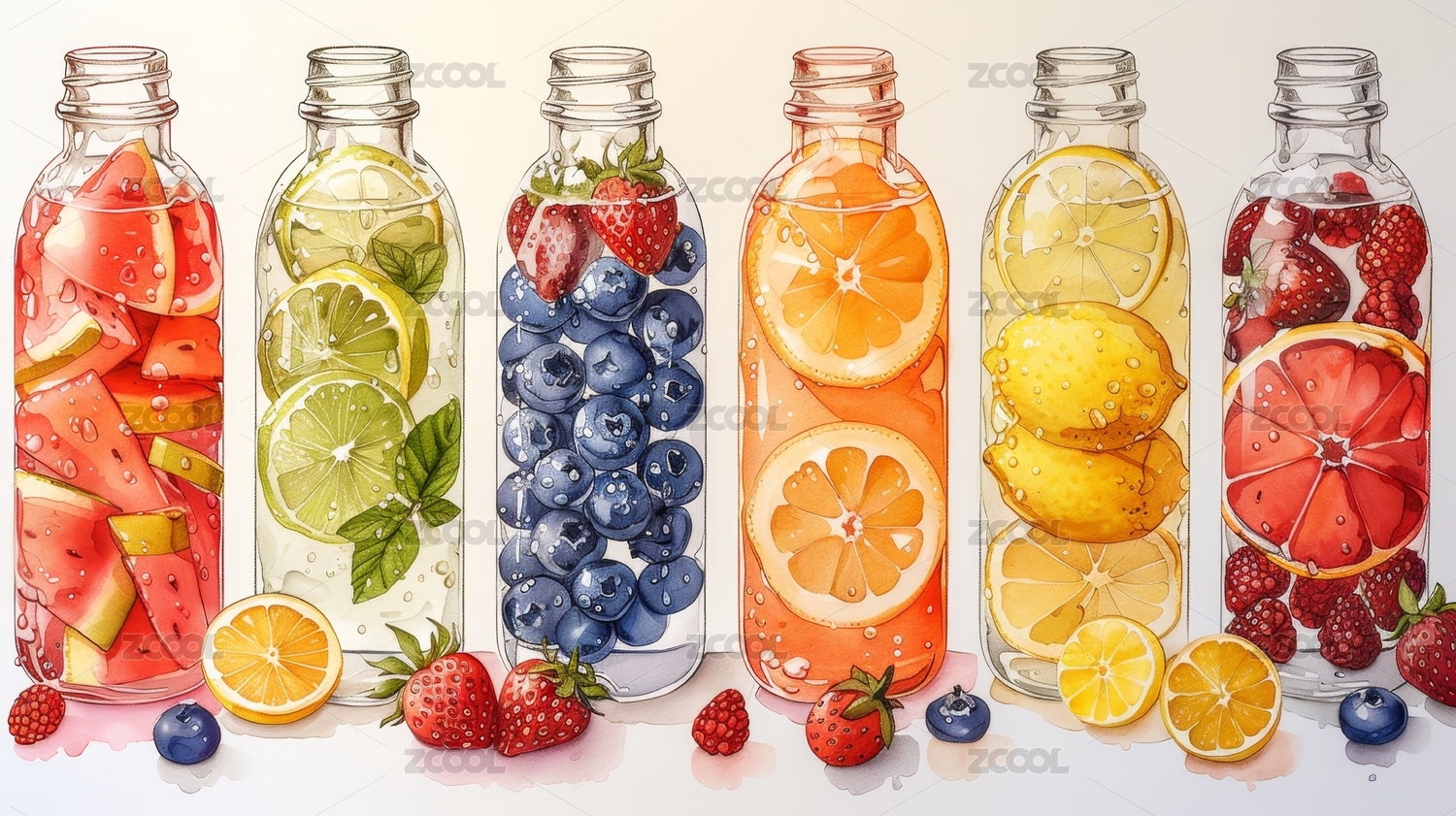 玻璃瓶里装满了水果插画