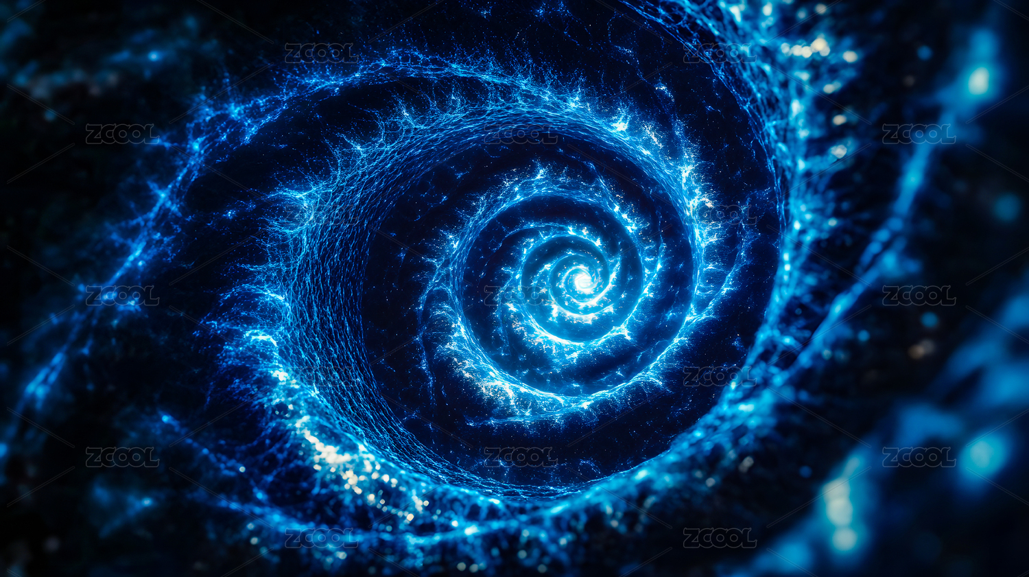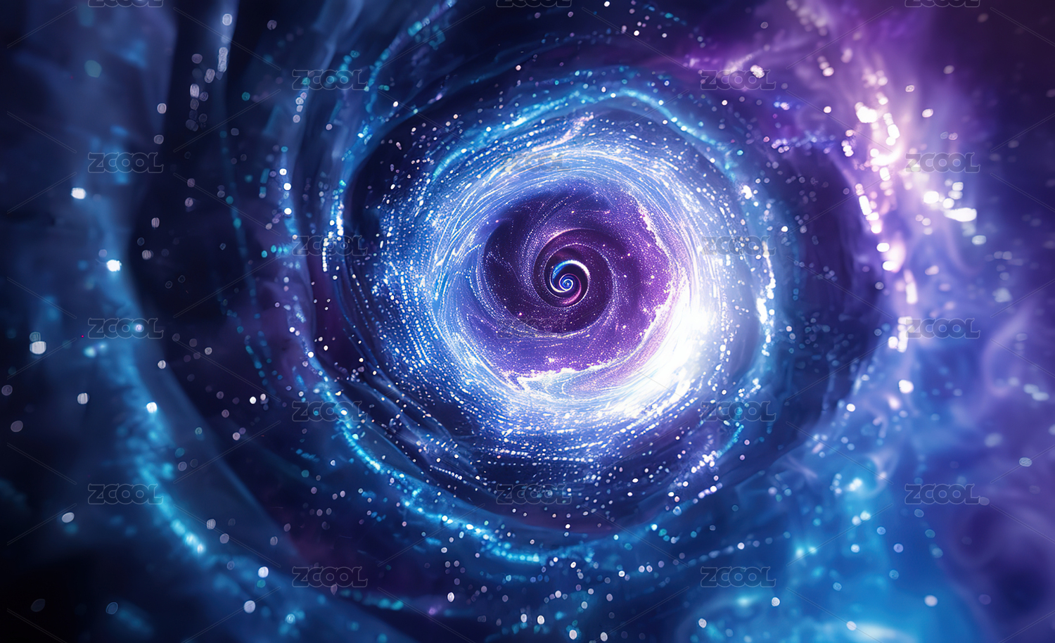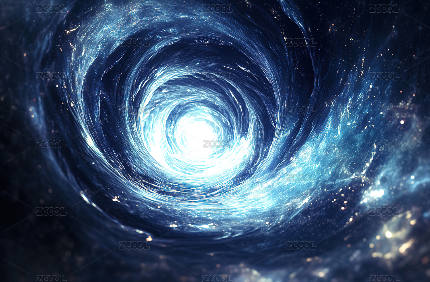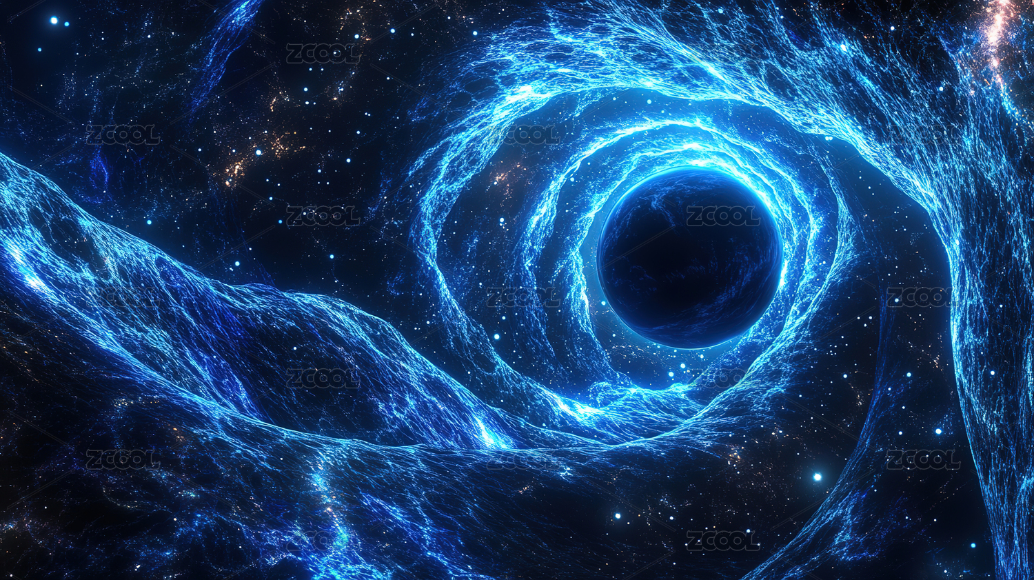 蔚蓝色的星空中有横行和黑洞的螺旋星系旋涡