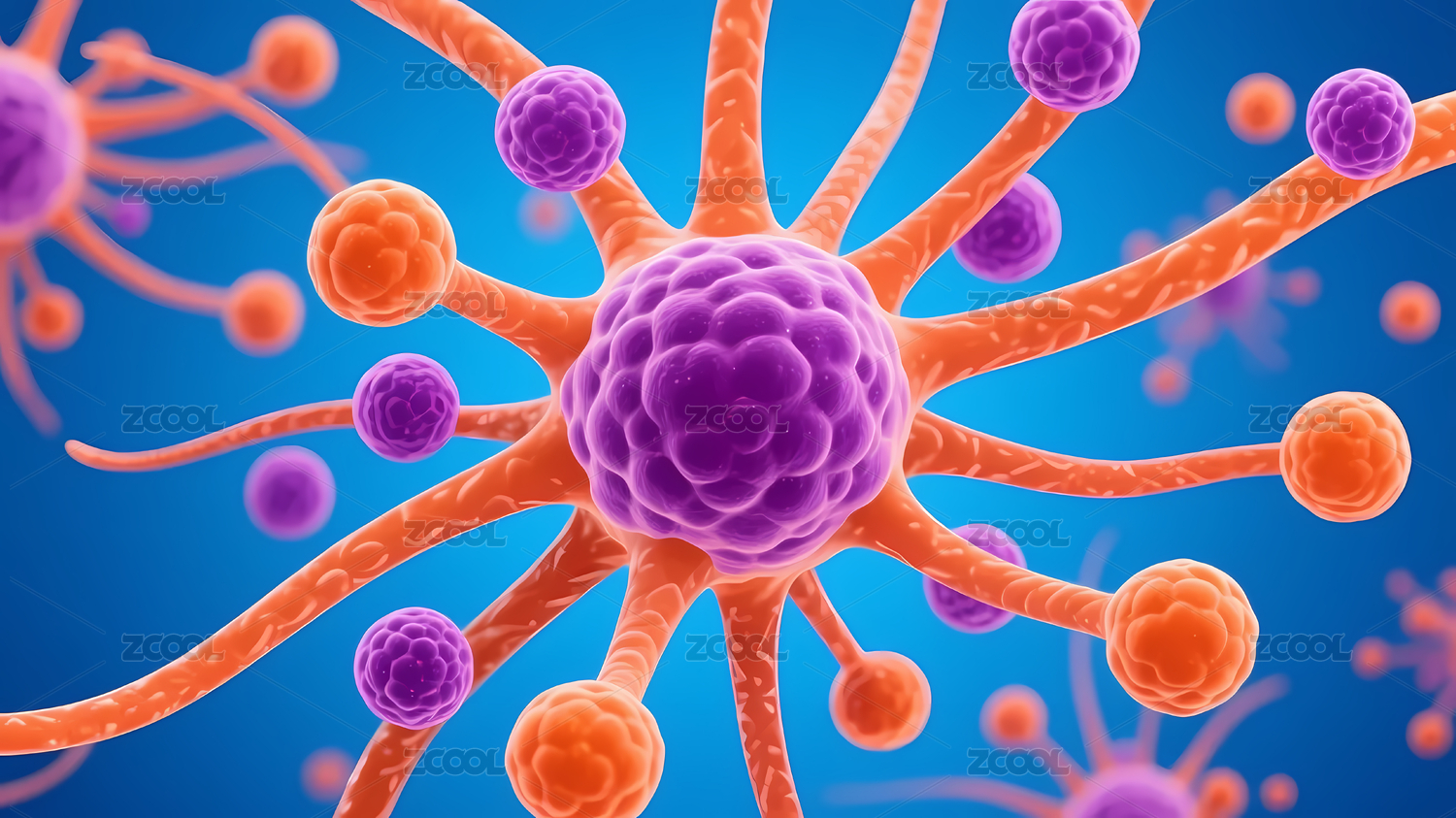 蓝色细胞与粉色突起的微观世界