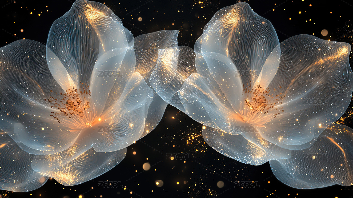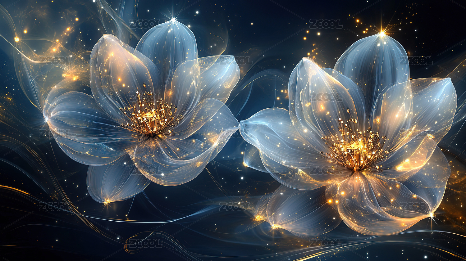 花朵花瓣绽放科技背景抽象数字艺术插画
