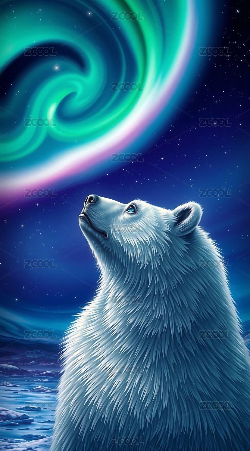 北极熊仰望星空主题