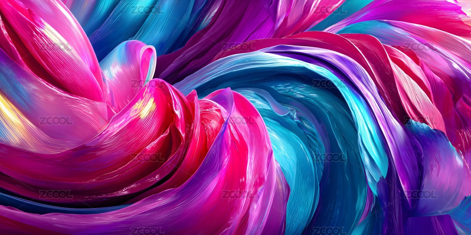 扭曲的抽象的彩色颜料线条,拥有丰富的细节,用作背景素材等