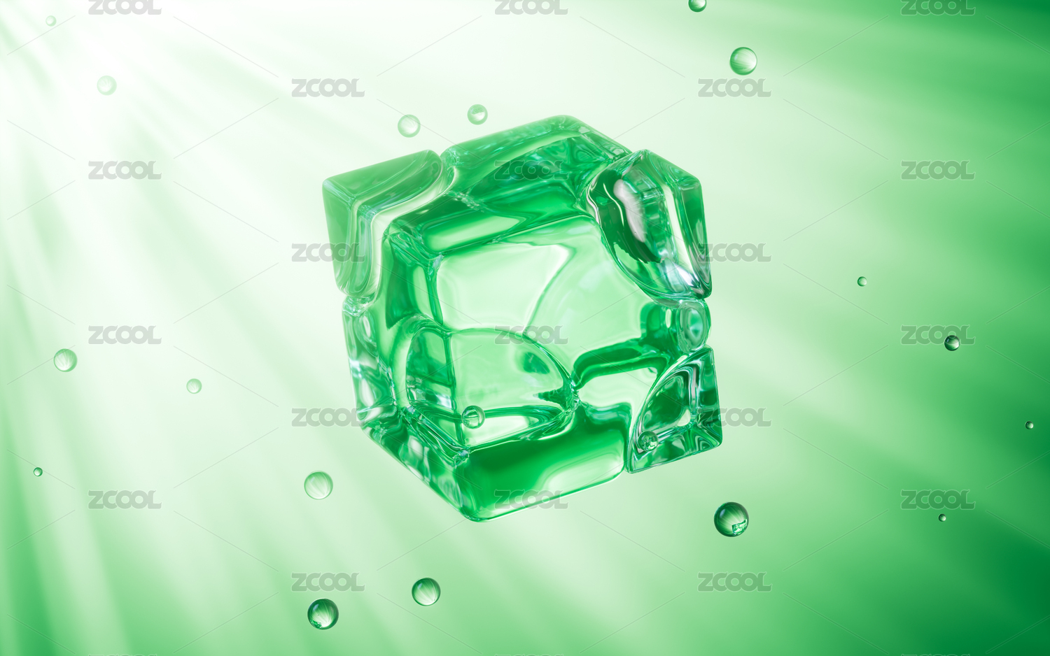商务,背景,光线,晶莹,透明,绿色,冰块,清新,水滴,飘浮