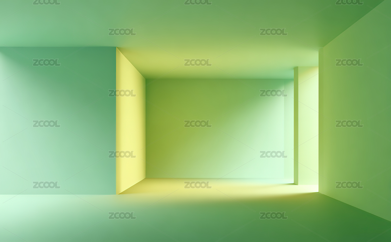 绿色现代几何建筑空间平台3D渲染抽象背景
