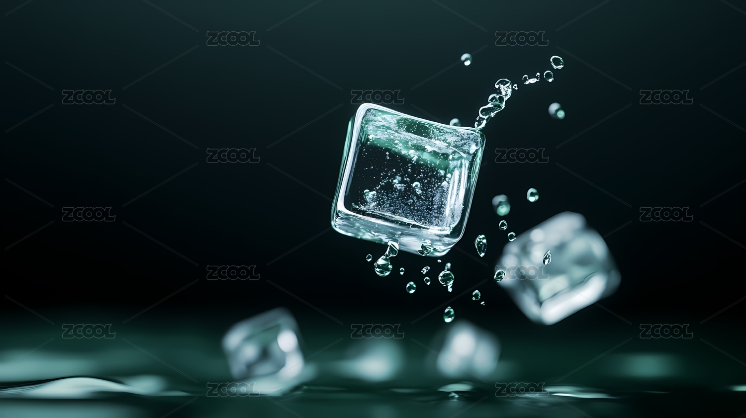 空间,光线,商务,透明,漂浮,绿色,虚化,冰块,悬浮,质感