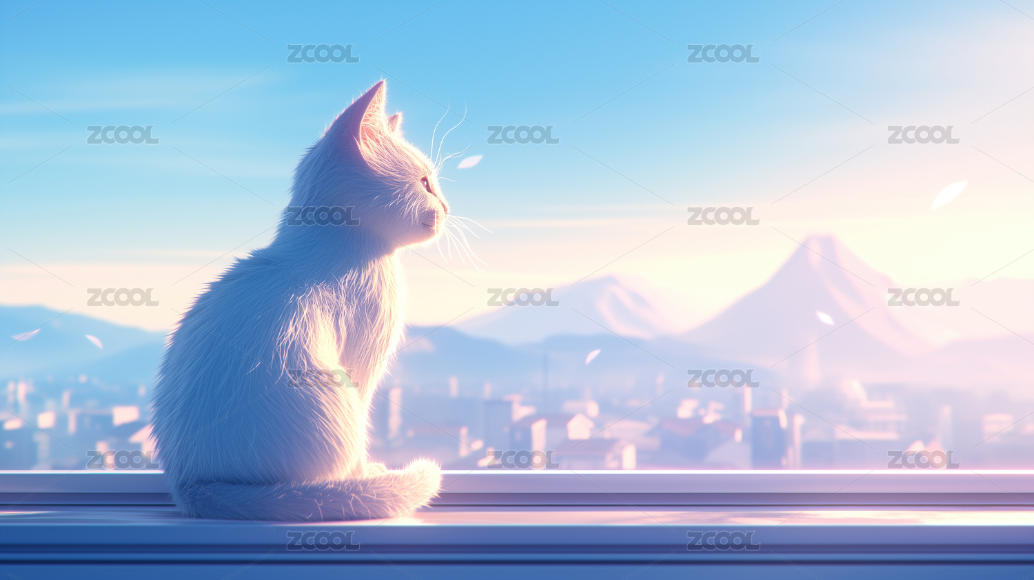 白猫眺望城市日落