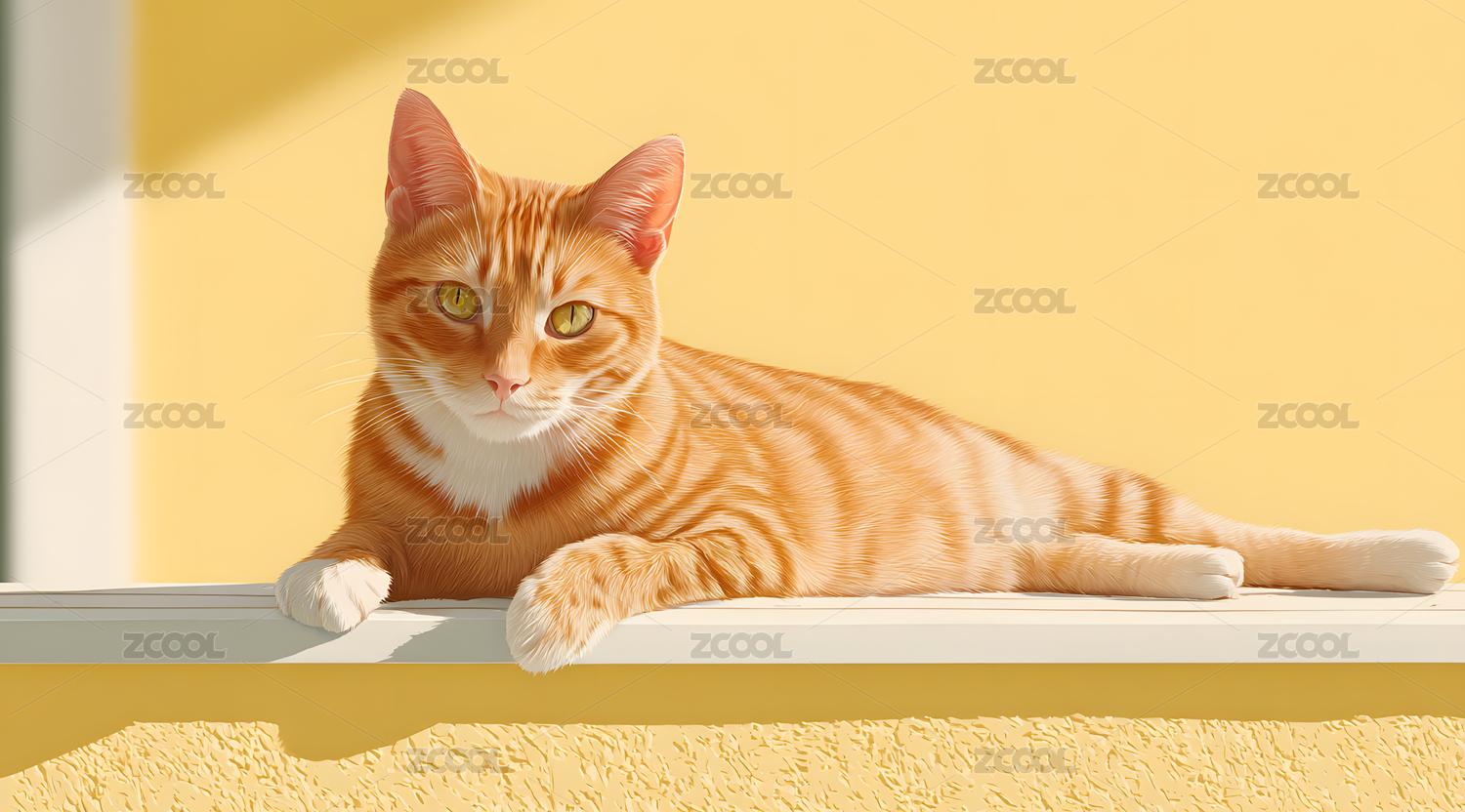 橘猫趴在白色窗台上
