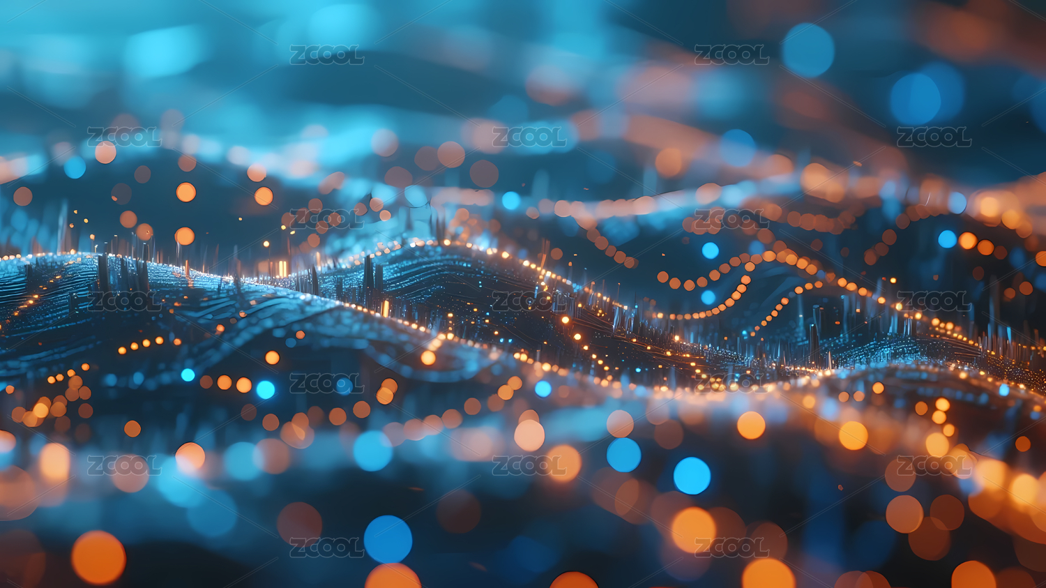 科技,蓝色,未来,深色,模糊,橙色,光点,视觉,动态,波浪