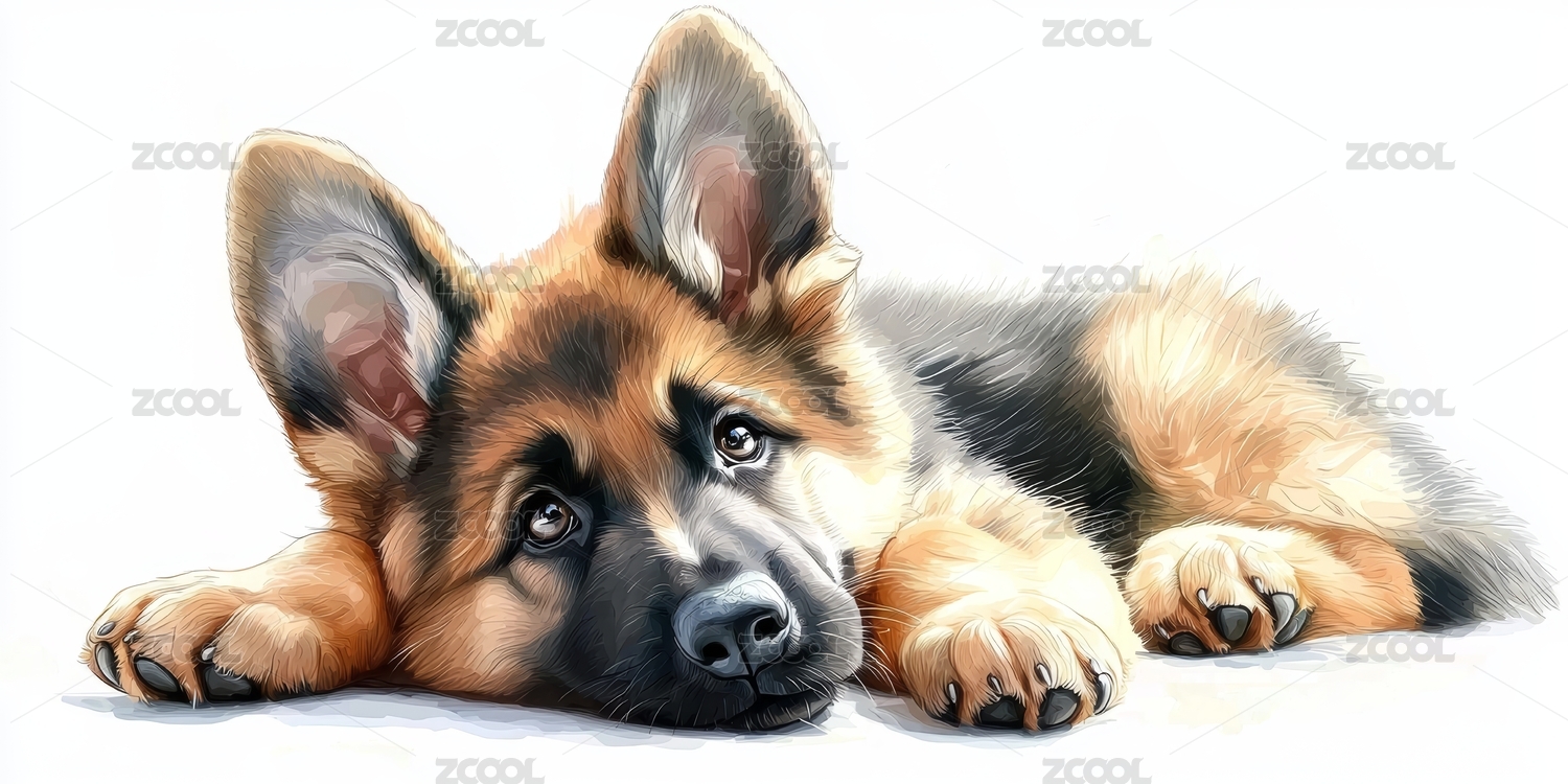 德牧幼犬萌宠插画场景