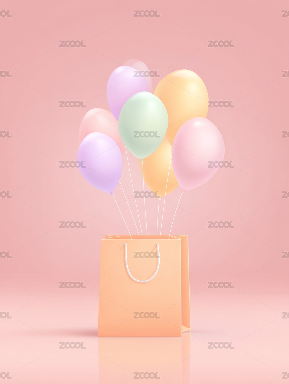 购物袋,气球,粉色,背景,彩色,节日,礼物,庆祝,简约,温馨