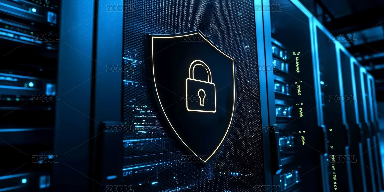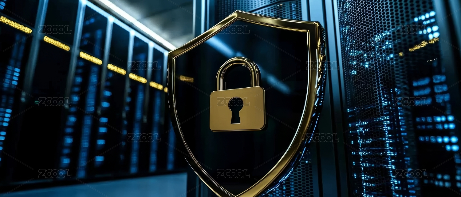 主视觉,场景,金色,蓝色,行业,科技,数字,防护,盾,安全