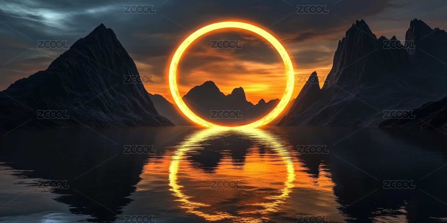 金色圆环山峦倒影奇观