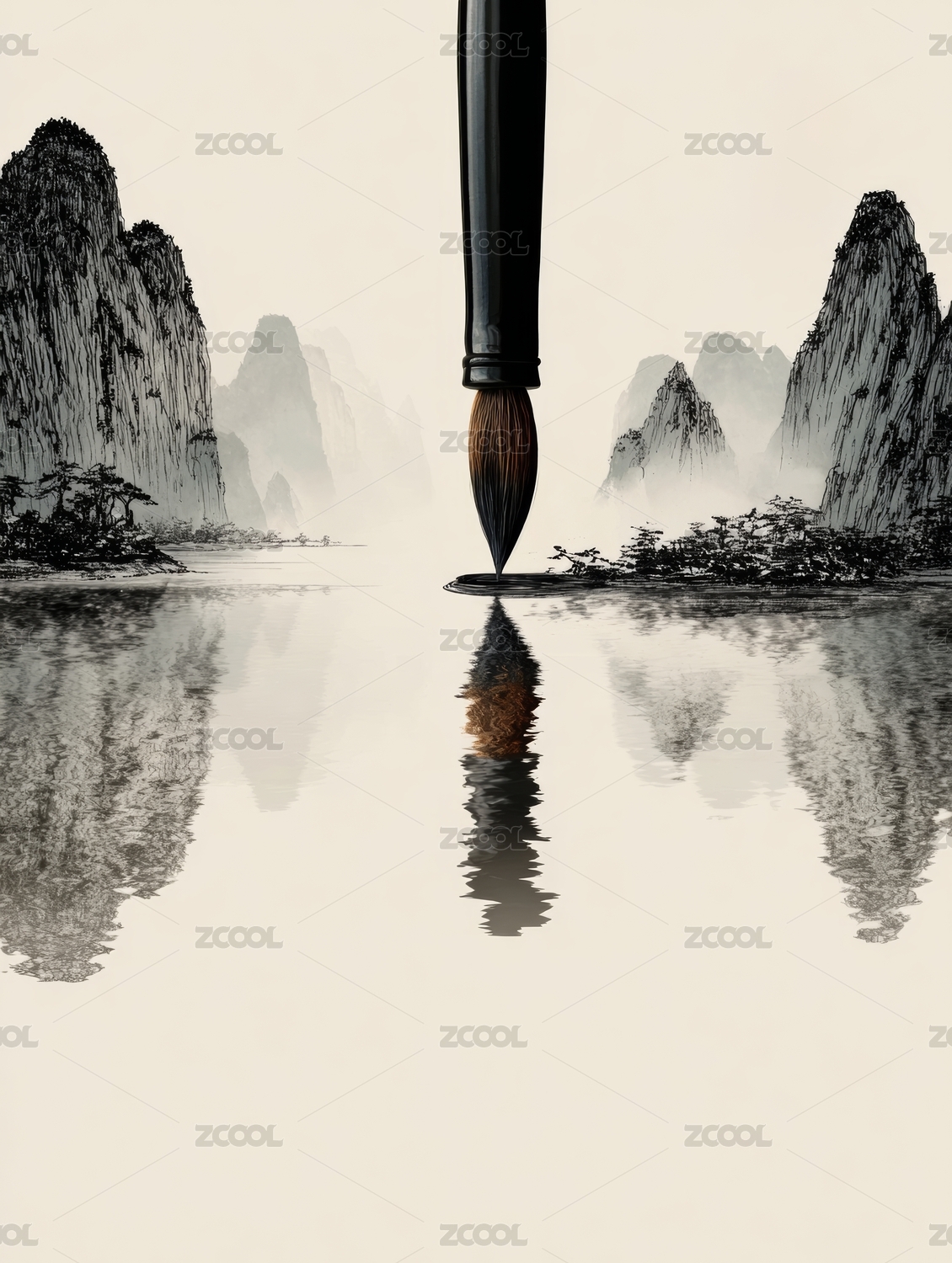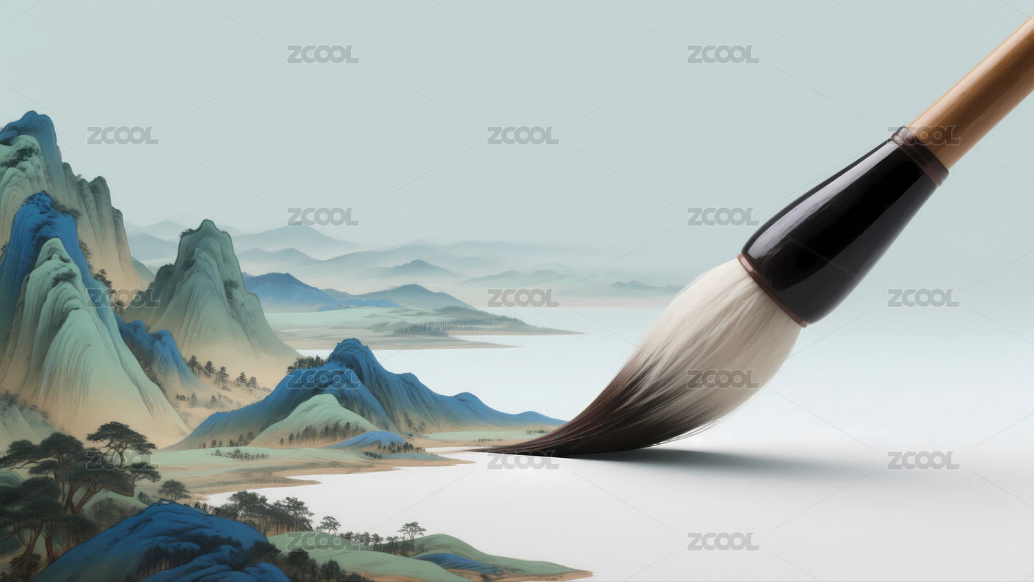 中国风,山水,风景,天空,毛笔,水,考试,笔,高山,山