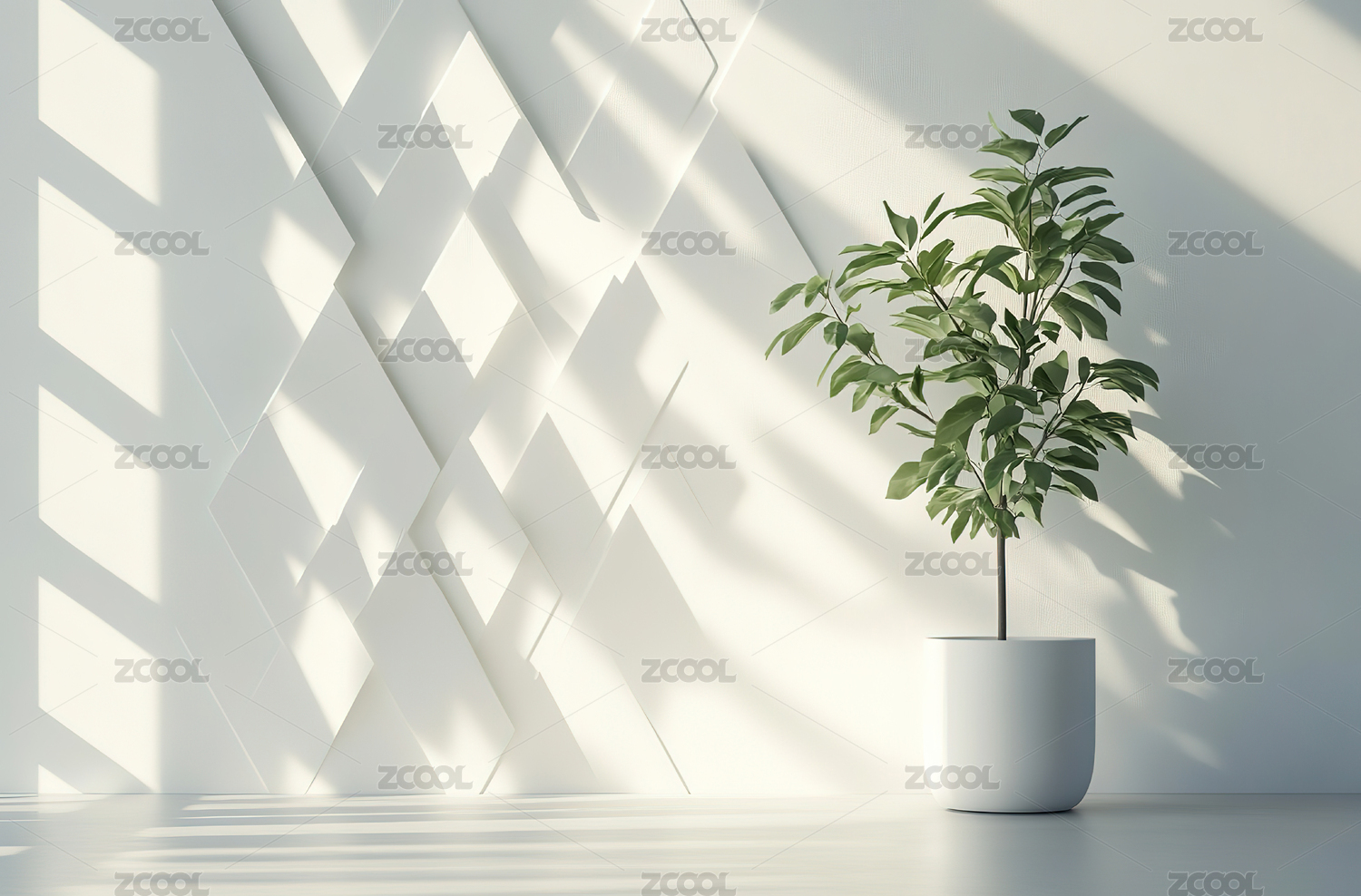 主视觉,绿植,盆栽,光影,室内,装饰,场景,白色,瓷砖,墙面