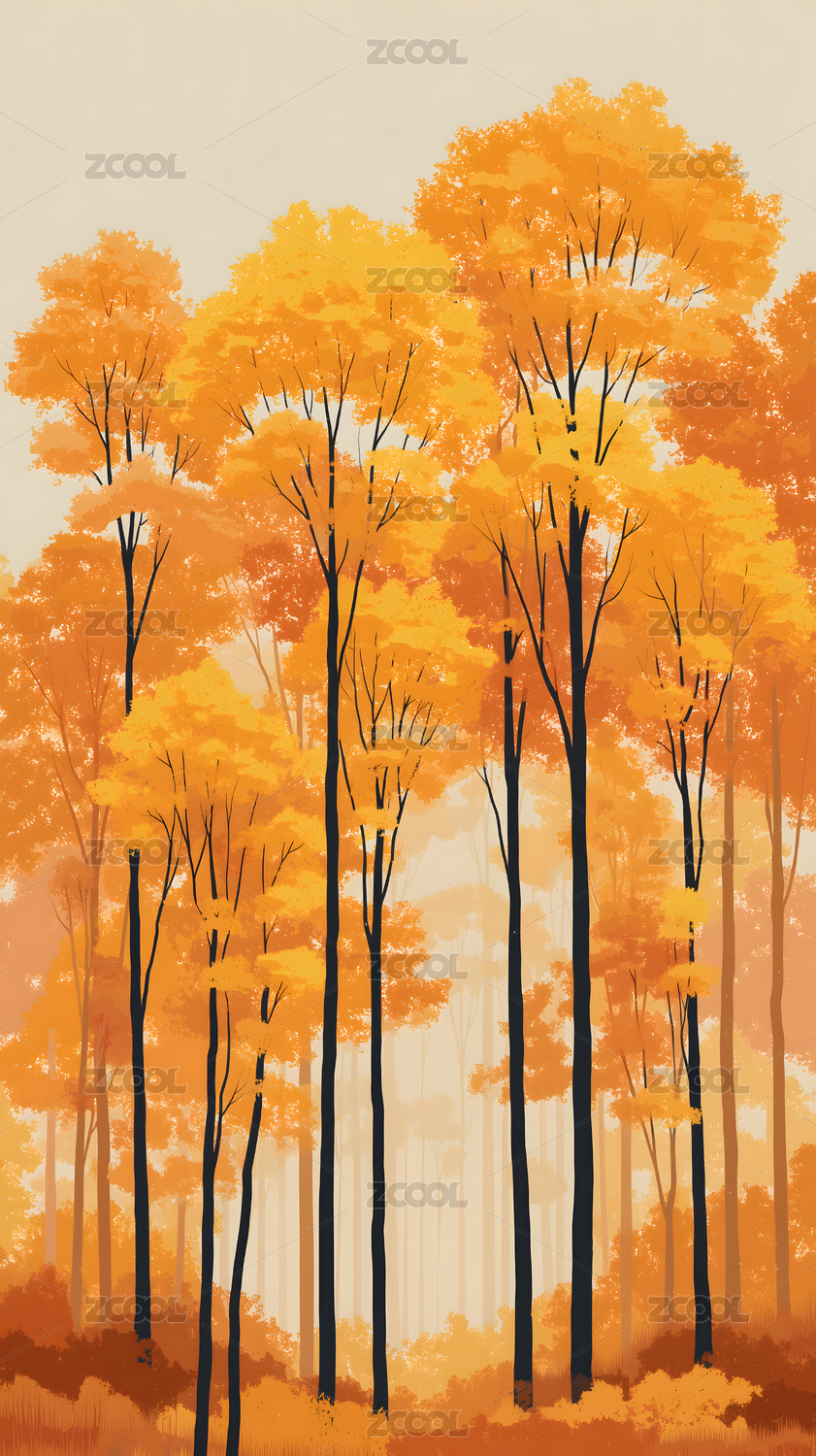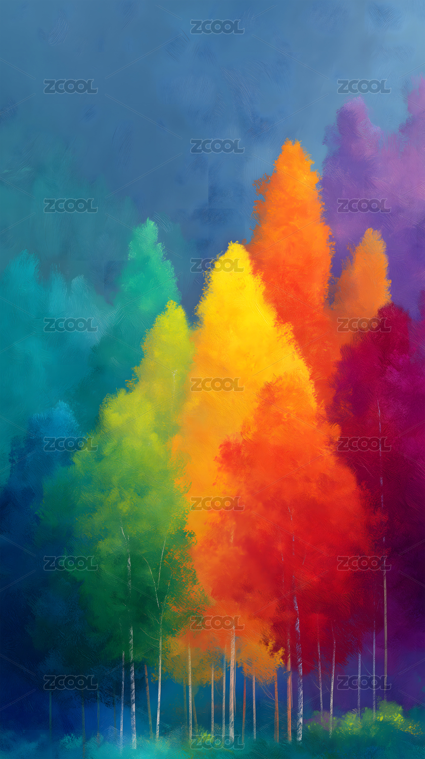 自然,风景,树木,天空,森林,光影,色彩,梦幻,绘画,绚丽