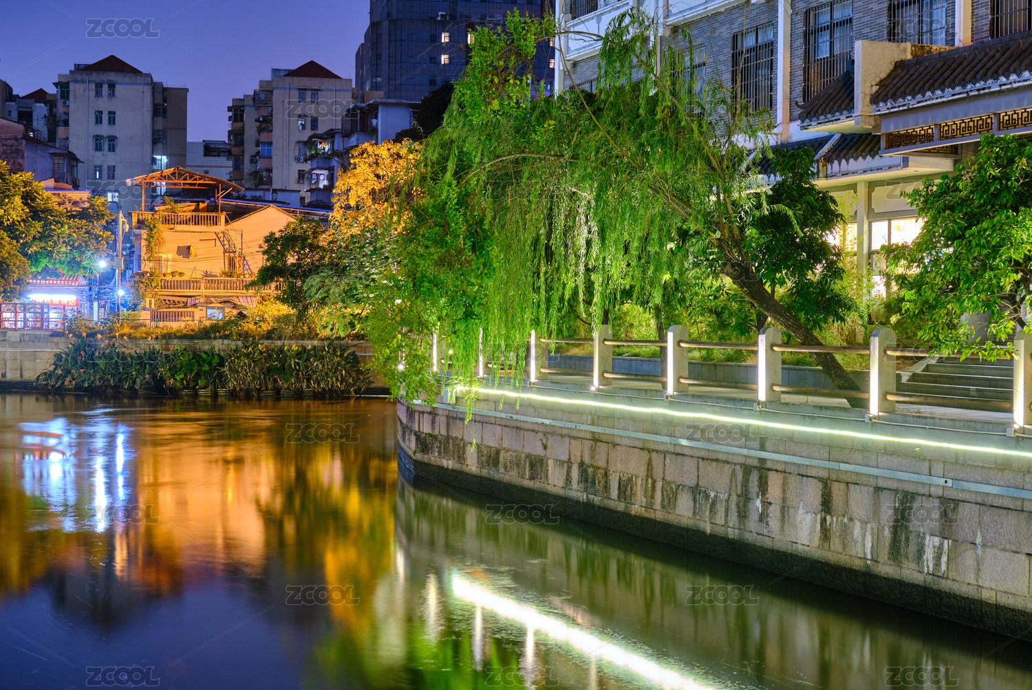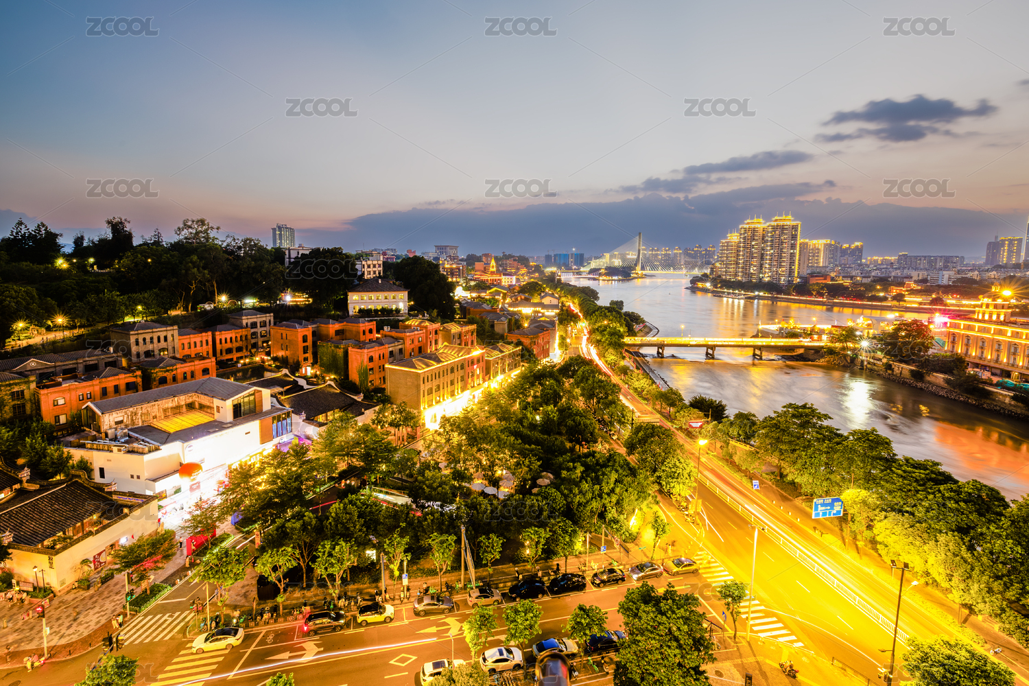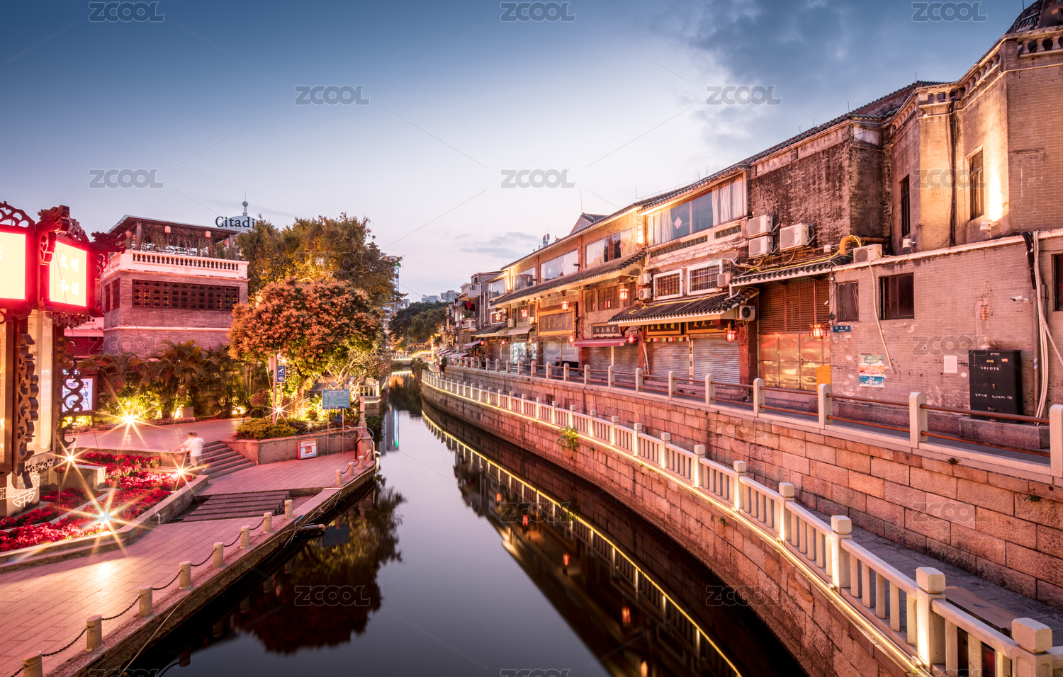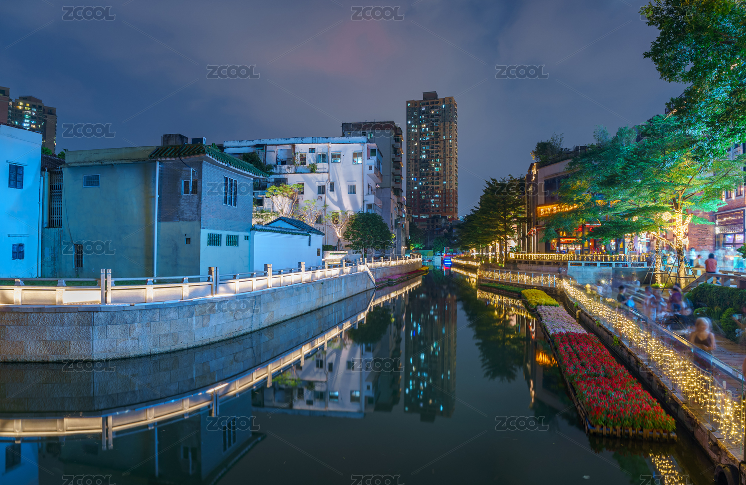 老广州荔枝湾涌旅游景区老城区夜景道路