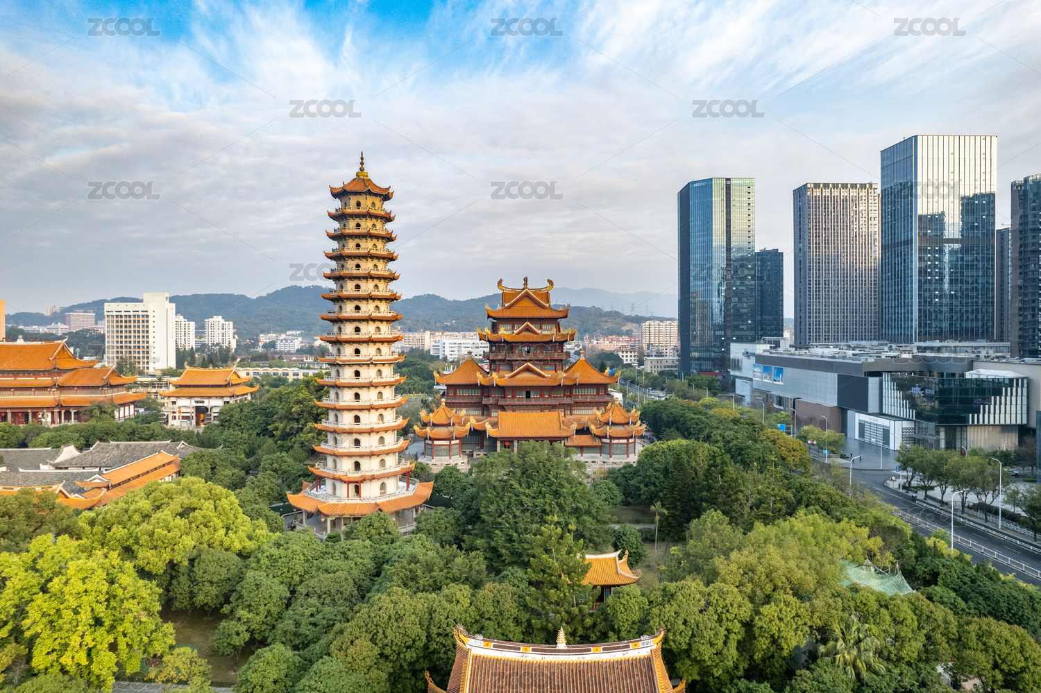 福州著名的西禅寺和现代城市建筑群