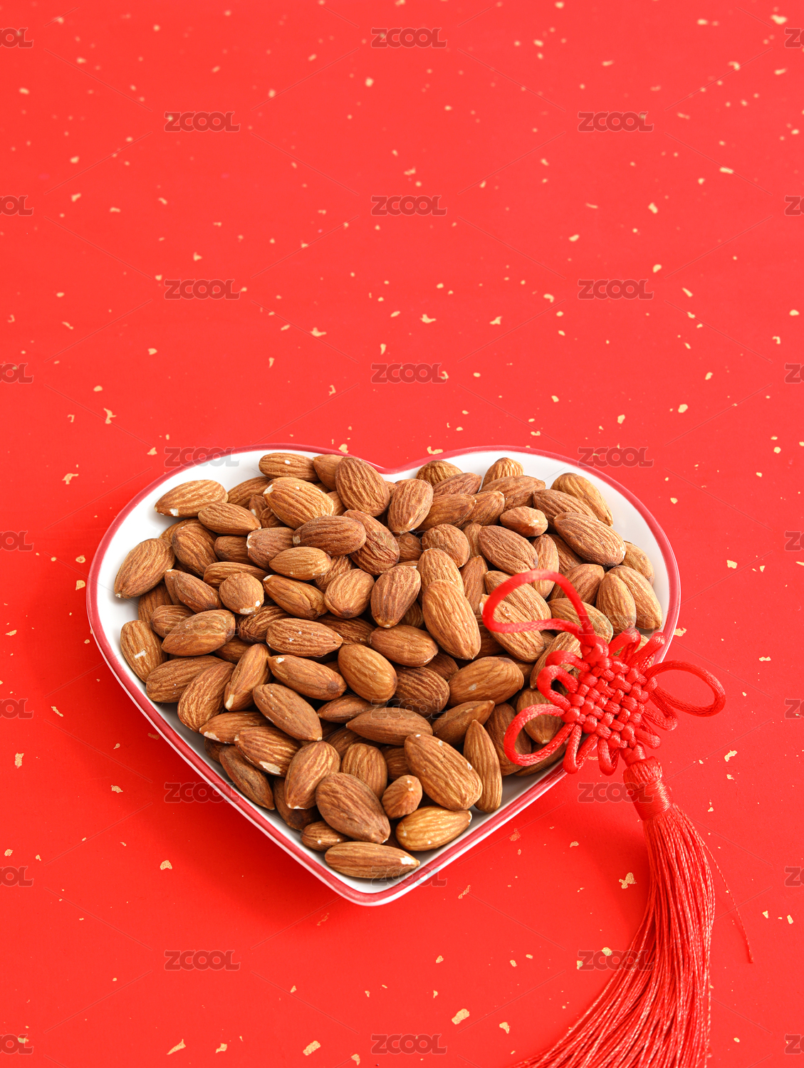 摆放着的中国传统节日春节年货坚果巴旦木仁