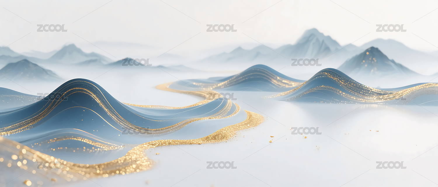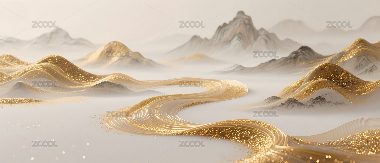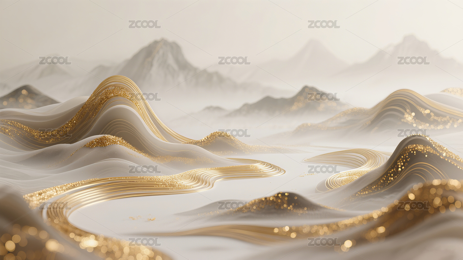 水墨画,高山,云雾,写意,背景,华贵,鎏金,工业,天空,风景